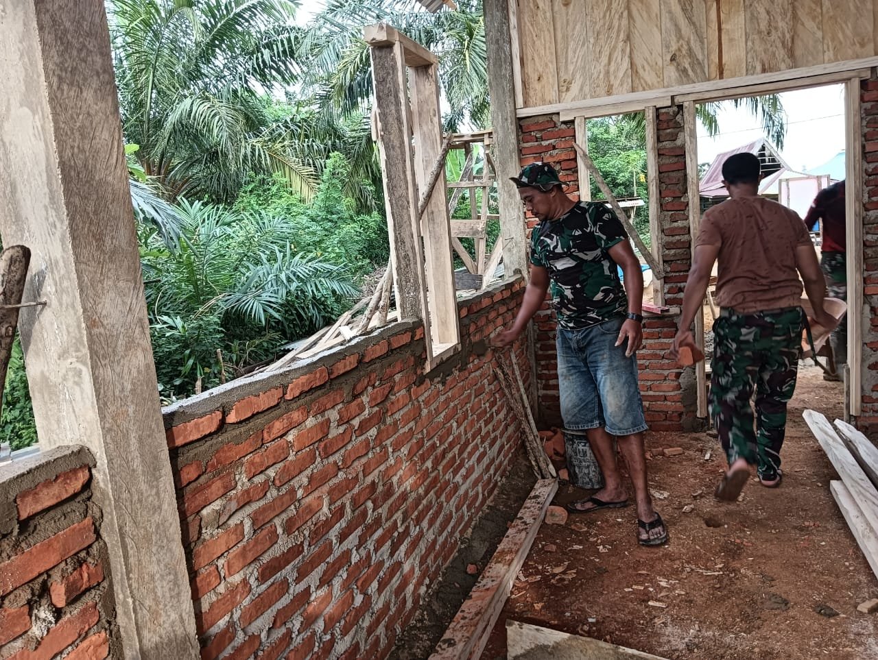 Rampungkan Pemasangan Atap Rumah Hasneni, Satgas Lanjut Pemasangan Dinding Papan