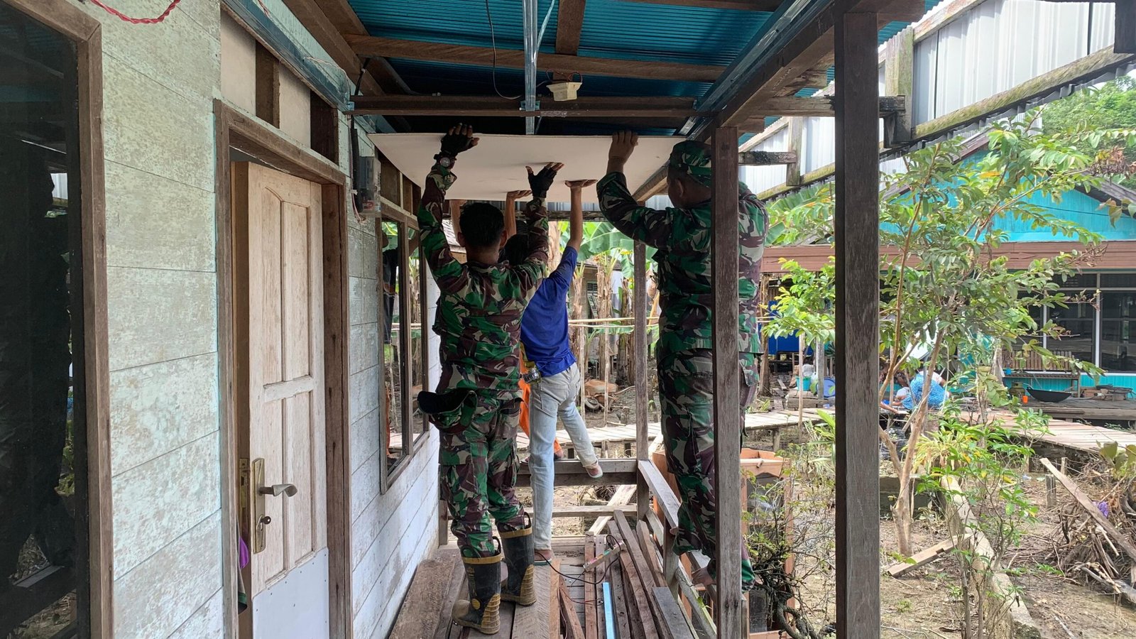 Rehab Mushola di Desa Talio, Satgas TMMD Kodim 1012/Buntok Pasang Plafon Demi Kenyamanan Beribadah