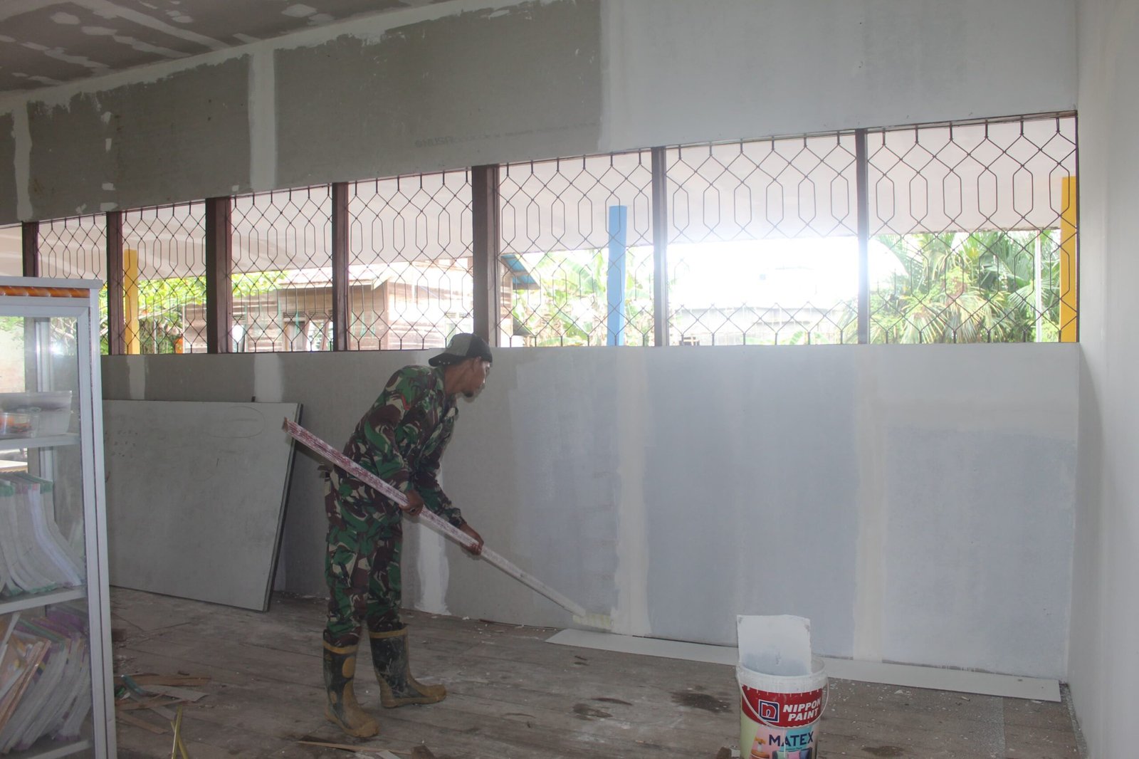 Rehabilitasi SDN 4 Karau Kuala Masuki Tahap Pengecatan dan Penghalusan Dempul