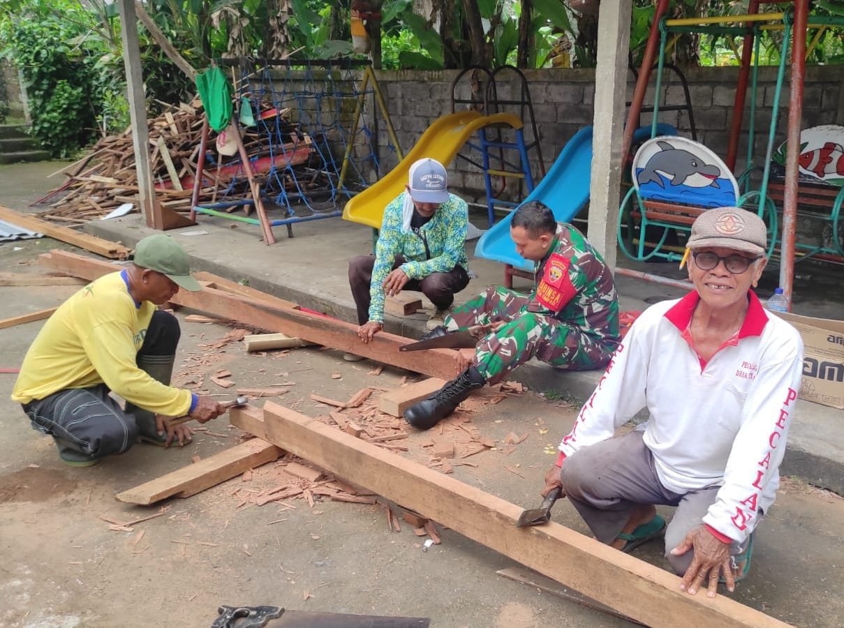 Renovasi Atap TK Tunas Mekar, Babinsa bersama Warga Bersatu untuk Anak-Anak Desa Timpag