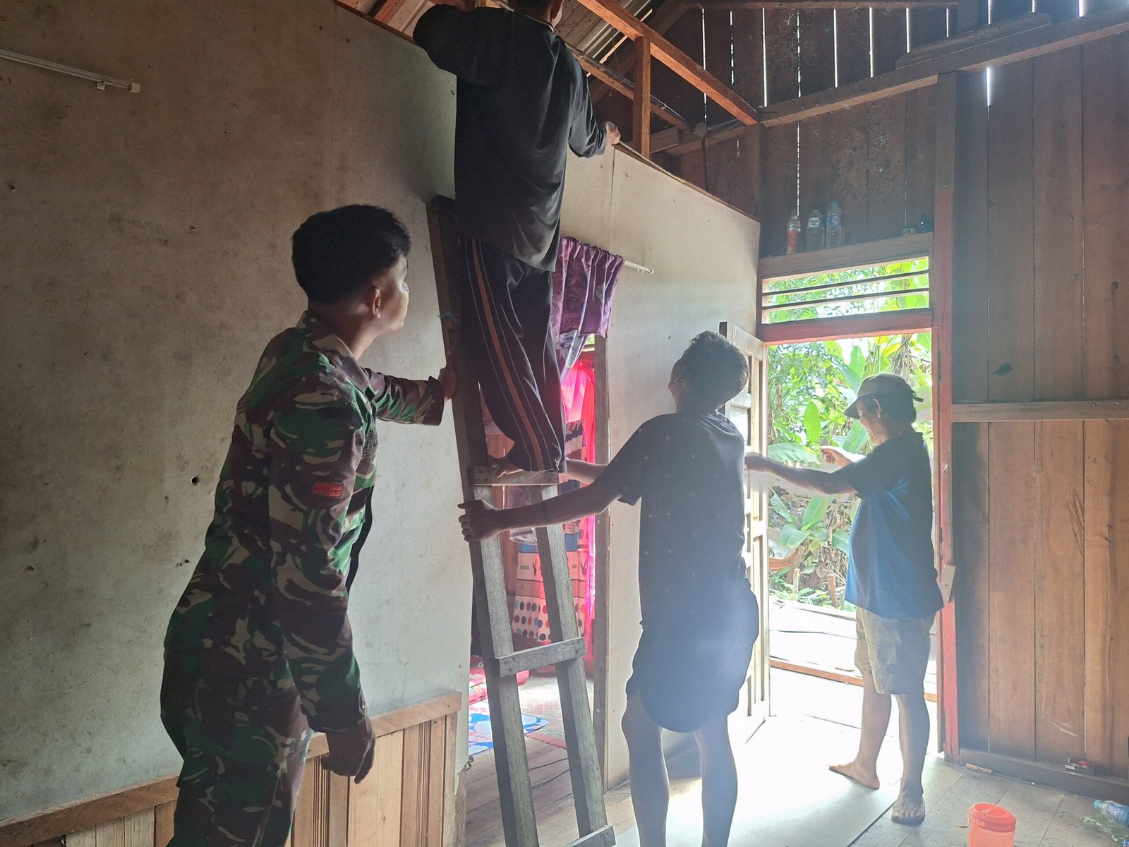 Pada proses pengerjaan yang berlangsung, terlihat kolaborasi erat antara personel TNI dan warga. Kekompakan ini menjadi kunci utama yang mendukung kelancaran setiap tahap pembangunan, mulai dari pemasangan kerangka rumah hingga tahap lanjutan lainnya.