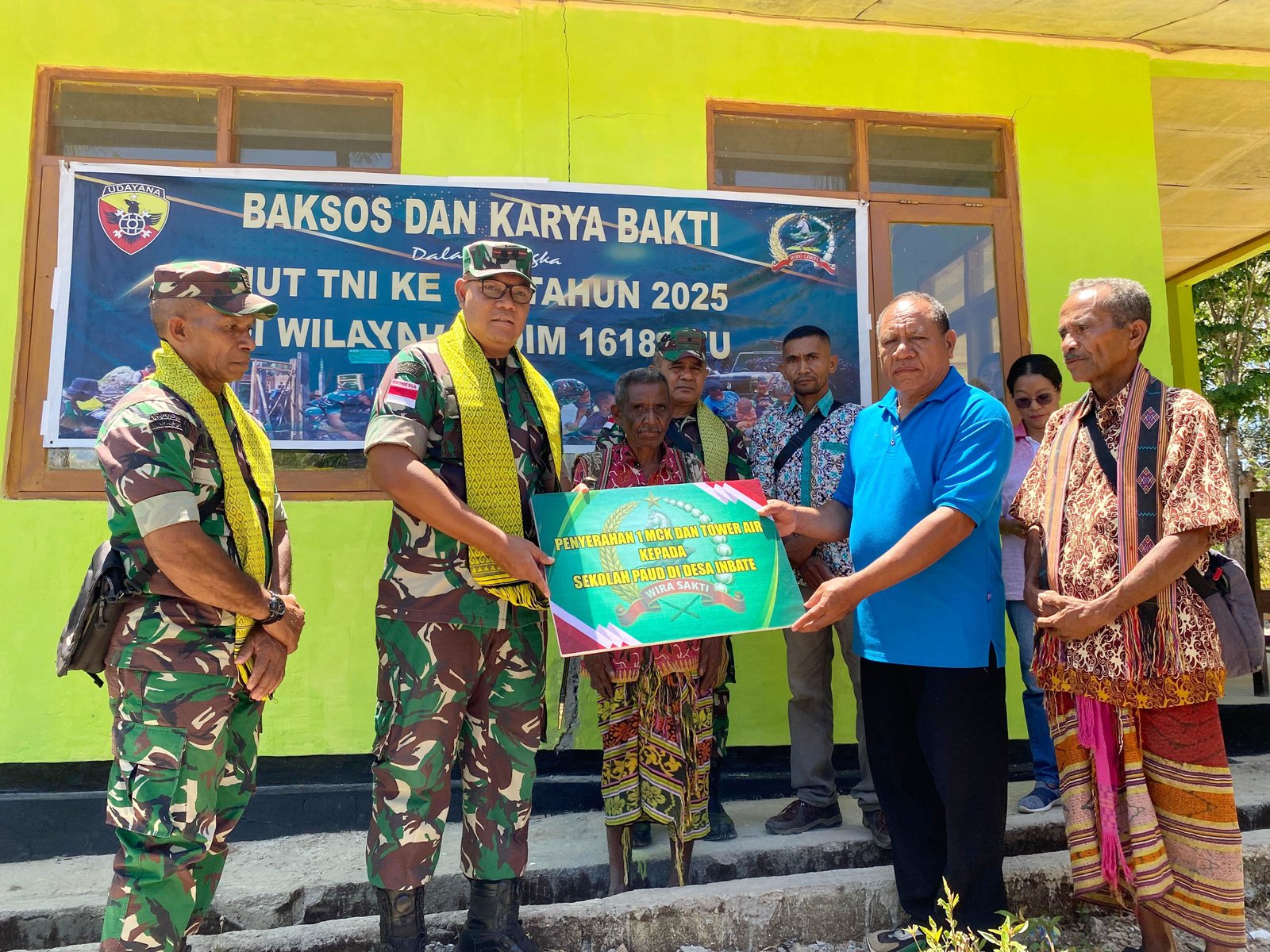 NTT-Kefamenanu., Jumat 03/10/2025., Kedatangan Dandim 1618/TTU, Letkol Arm Didit Prasetyo Purwanto, S.E., untuk kesekian kalinya hadir di Desa Inbate, Kecamatan Bikomi Ninulat, Kabupaten TTU. Kehadiran Dandim 1618/TTU kali ini disambut hangat oleh para tokoh masyarakat, Dalam kunjungannya kali ini, Dandim 1618/TTU menyerahkan secara resmi bantuan berupa satu unit MCK dan sebuah tower air yang diperuntukkan bagi sekolah PAUD Oeliso.