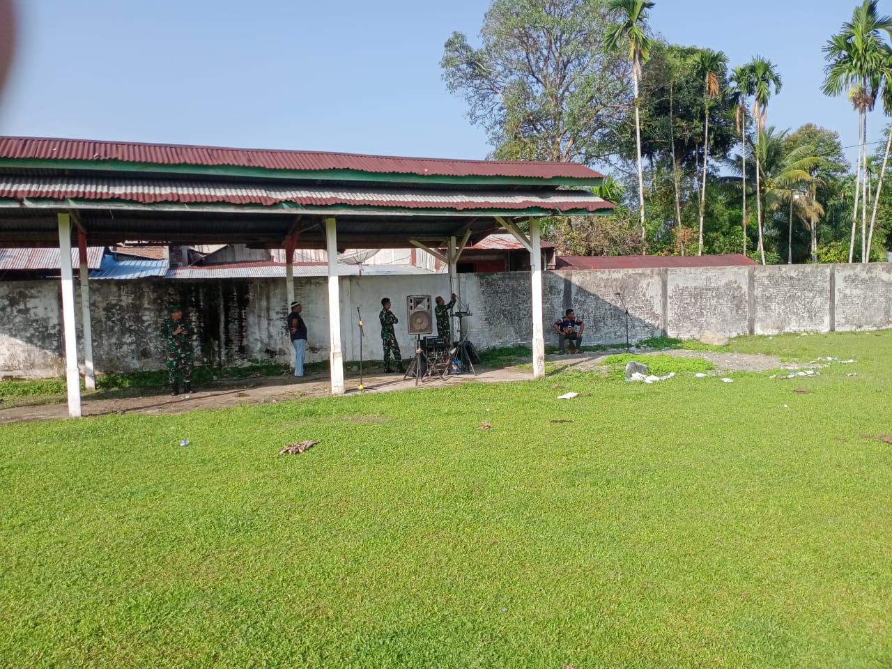 Menjelang pelaksanaan kegiatan, sejumlah personel Kodim bersama panitia tampak melakukan berbagai persiapan di lokasi, Selasa (10/3/2026). Mulai dari pembersihan area sekitar lapangan hingga pemasangan banner kegiatan pasar murah dilakukan secara gotong royong.