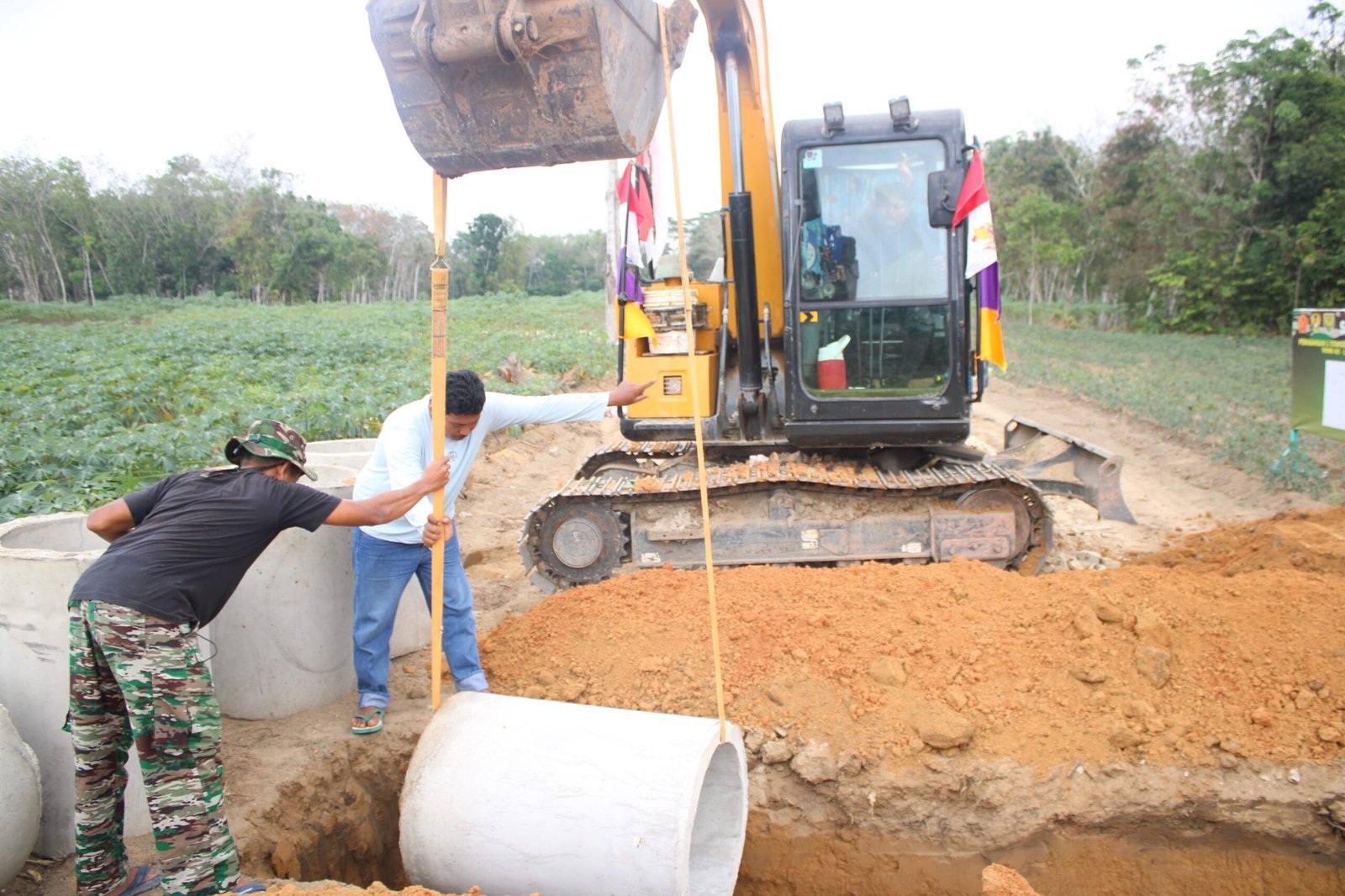 Satgas TMMD 125 Kodim 0426/TB Pasang Gorong-Gorong di Kampung Moris Jaya
