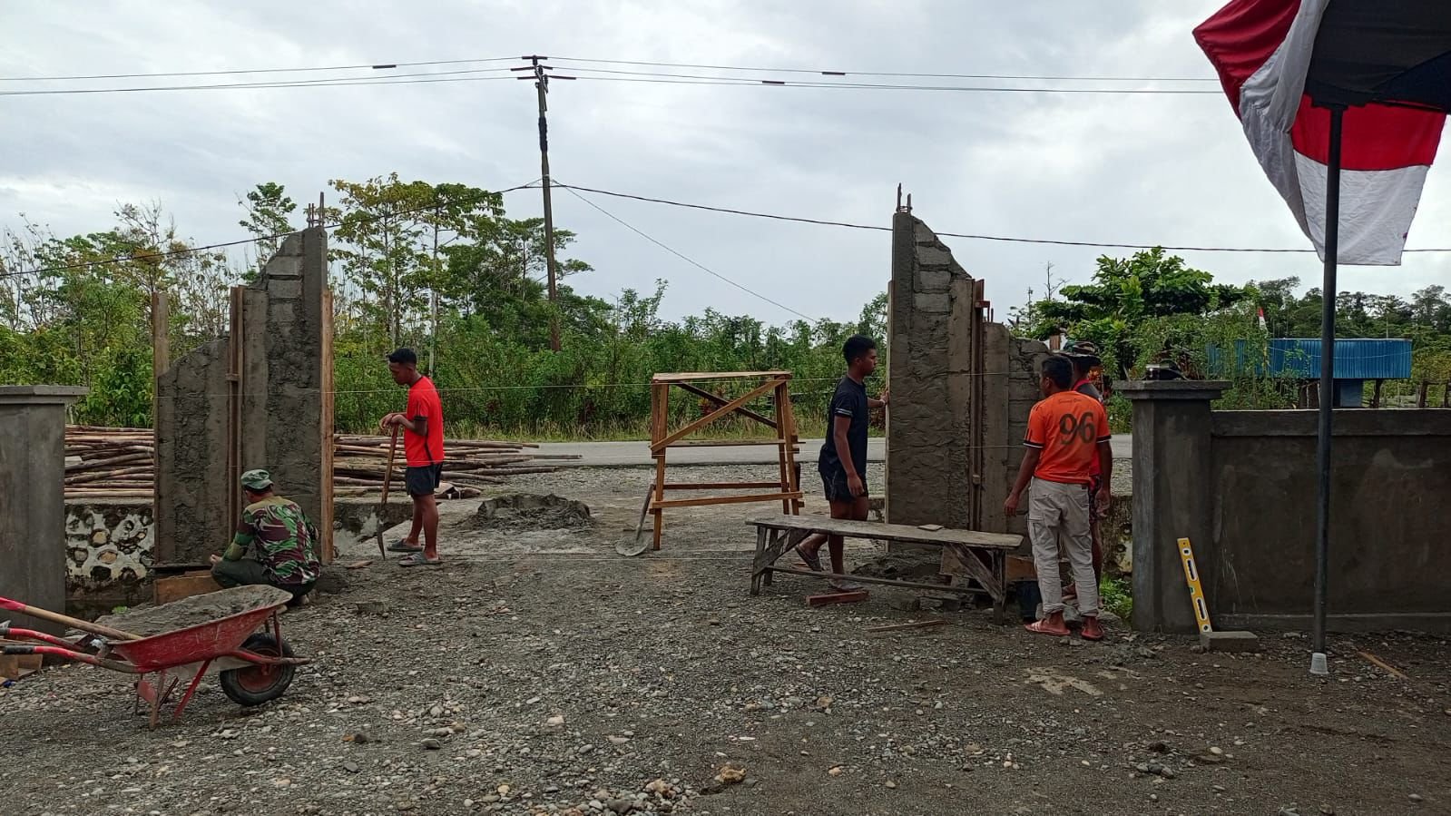 Satgas TMMD 125 Kodim 1705/Nabire Teliti Bangun Gapura Gereja Talitakum