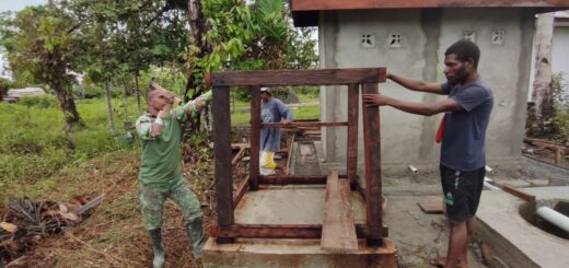 Nabire, Papua Tengah – Pembuatan gapura Gereja Talitakum di Kampung Manunggal Jaya Legari SP4, Distrik Makimi, dikerjakan dengan penuh ketelitian oleh Satgas TMMD ke-125 Kodim 1705/Nabire. Setiap tahap pengerjaan dilakukan sesuai perencanaan teknis agar hasilnya rapi, kuat, dan menarik.