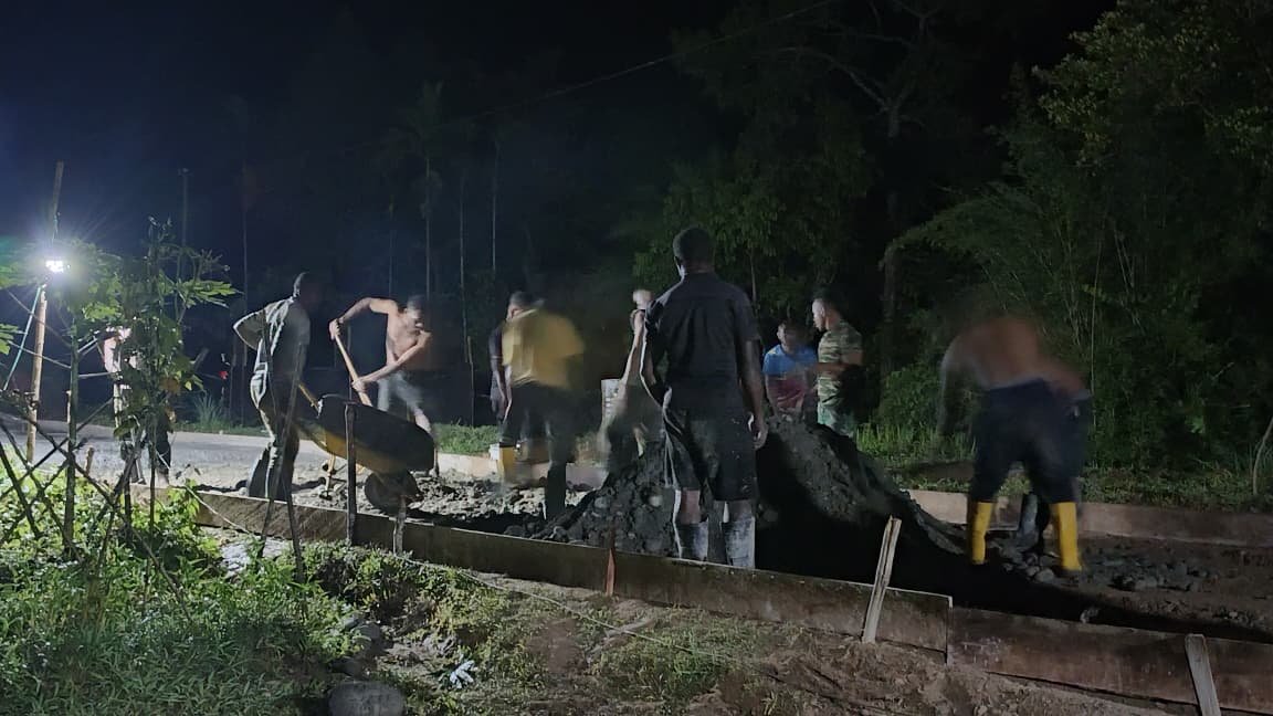 Satgas TMMD 126 Kodim 1711/BVD dan Warga Tetap Bekerja di Malam Hari Demi Tuntaskan Pengecoran Jalan