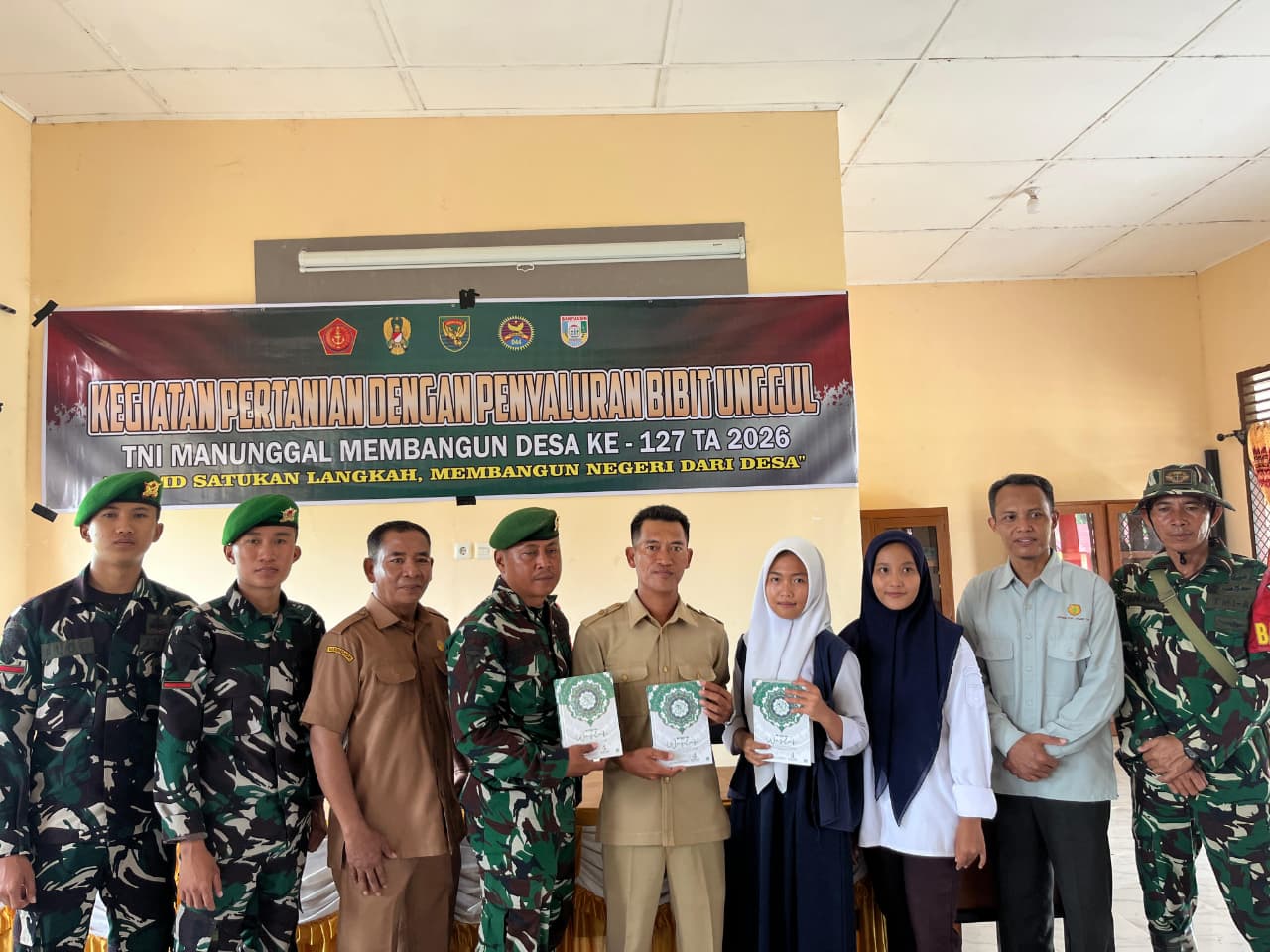 Satgas TMMD 127 Berikan Al-Qur’an untuk Masyarakat Wonosari sebagai Bentuk Pembinaan Rohani