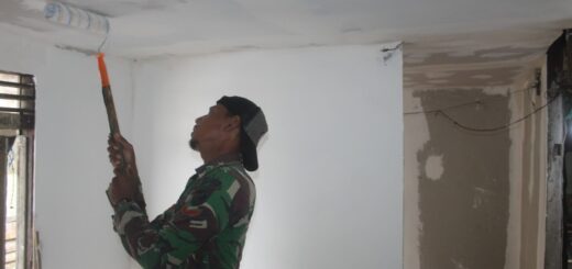 Kendari – Anggota Satgas TMMD ke-127 tengah mempercepat rehabilitasi Rumah Tidak Layak Huni (RTLH) di Kelurahan Petoaha, Kota Kendari, pada Jumat (27/2). Para personel dari Kodim Kendari terlihat sangat berkonsentrasi dalam proses pemasangan rangka atap serta dinding, yang merupakan bagian penting dari struktur utama hunian sebelum memasuki tahap penyelesaian akhir.