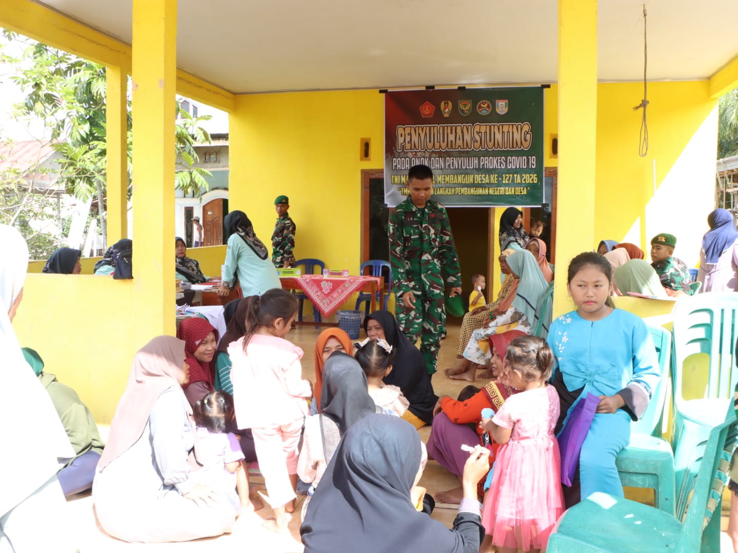 Kegiatan ini termasuk dalam program nonfisik TMMD yang bertujuan untuk meningkatkan kesadaran dan pengetahuan masyarakat tentang pencegahan stunting sejak usia dini. Selama penyuluhan, warga diajarkan mengenai pentingnya nutrisi seimbang, pola asuh yang benar, serta pentingnya pemeriksaan kesehatan secara rutin untuk anak-anak.
