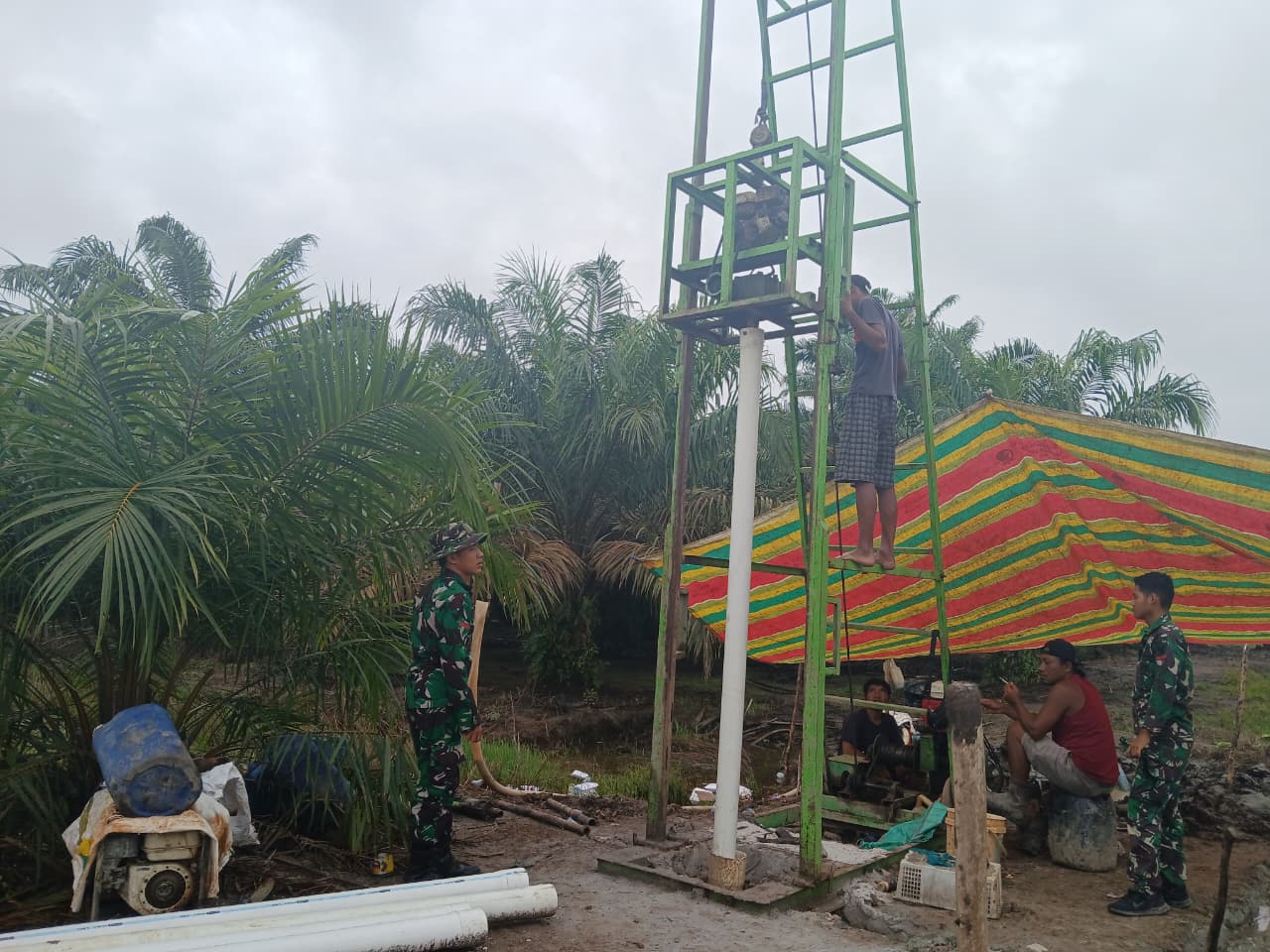 Banyuasin – Dalam upaya memastikan seluruh target program tercapai sesuai jadwal, anggota Satgas TNI Manunggal Membangun Desa (TMMD) ke-127 Kodim 0430/Banyuasin mempercepat pembangunan sumur bor ketiga di belakang Kantor Kepala Desa Wonosari, Kecamatan Pulau Rimau. Kegiatan ini melibatkan kerjasama antara personel Satgas TMMD dan masyarakat setempat yang aktif membantu dalam proses pengerjaan.