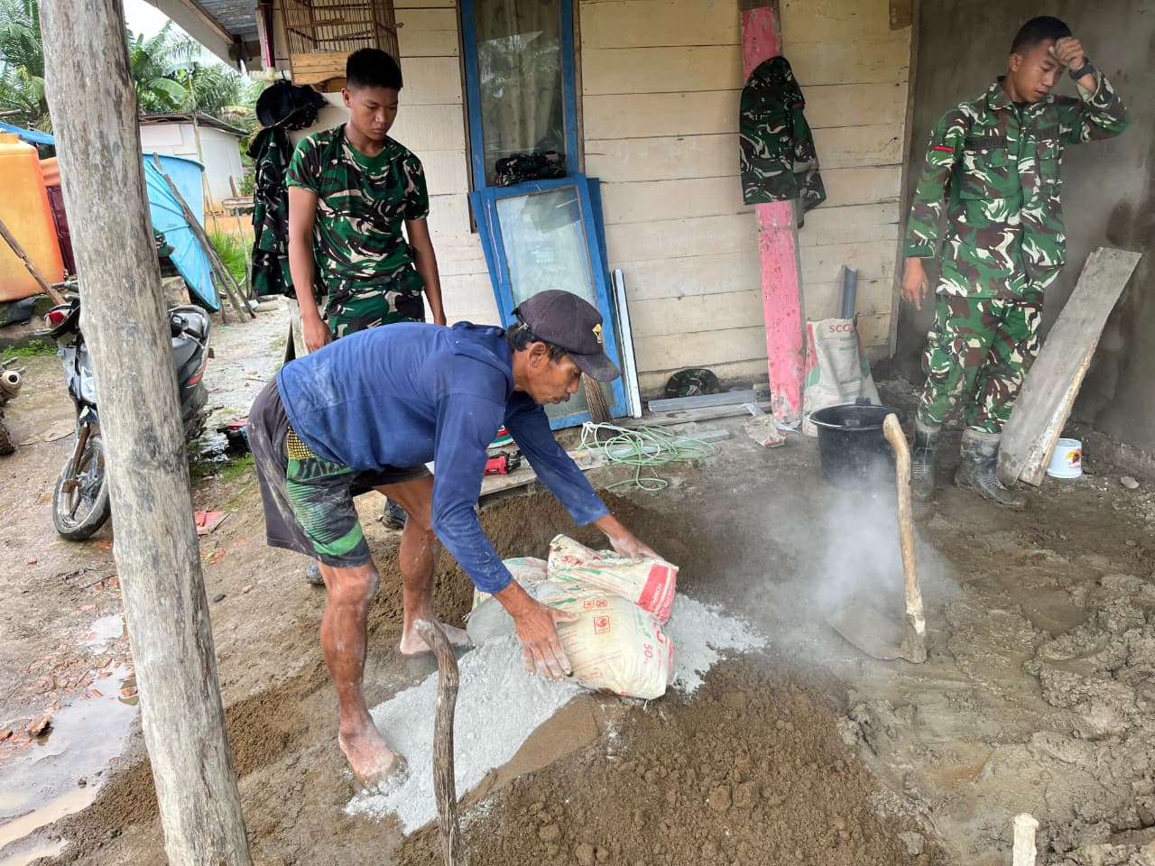 Banyuasin – Dalam upaya menyelesaikan sasaran fisik program TNI Manunggal Membangun Desa (TMMD) ke-127, anggota Satgas TMMD dari Kodim 0430/Banyuasin terus mempercepat proses pembangunan rumah tidak layak huni (RTLH) milik Bapak Paiman yang berlokasi di Desa Wonosari, Kecamatan Pulau Rimau, Kabupaten Banyuasin.