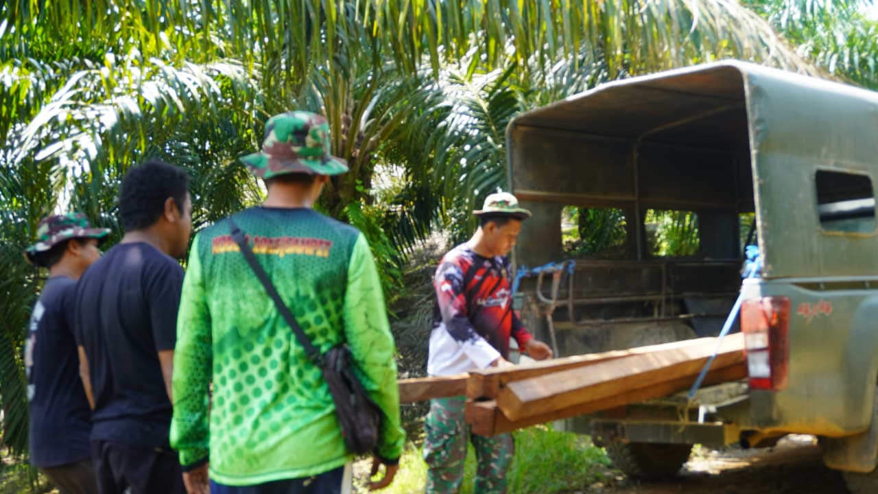 Satgas TMMD 127 Siap Membangun Jembatan Akses Perkebunan dengan Material Kayu Ulin