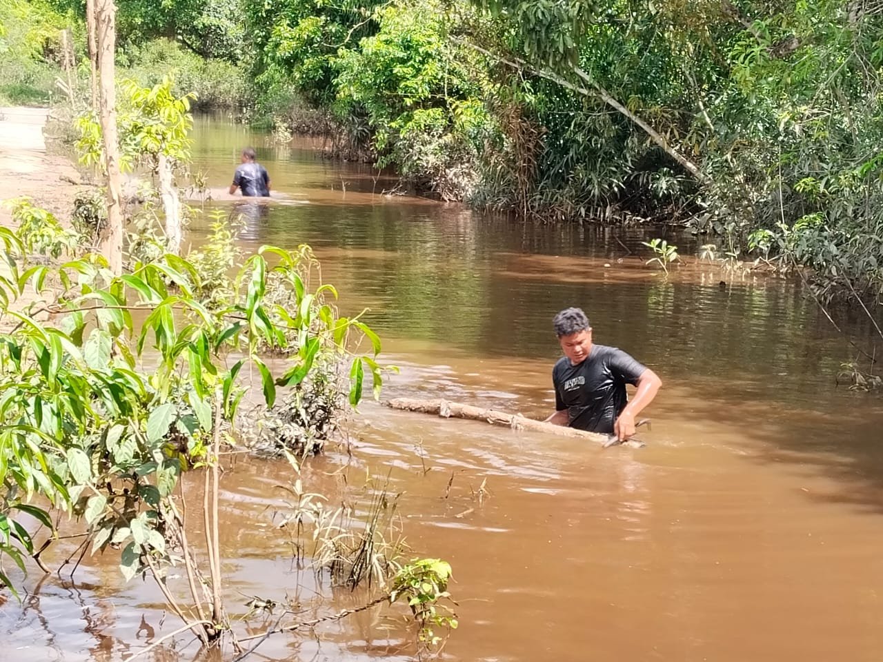 “Kami harus menyesuaikan dengan kondisi alam. Sungai ini bukan penghalang, justru jadi solusi,” ujar Dansatgas TMMD, Letkol Inf Langgeng Pujut Santoso.