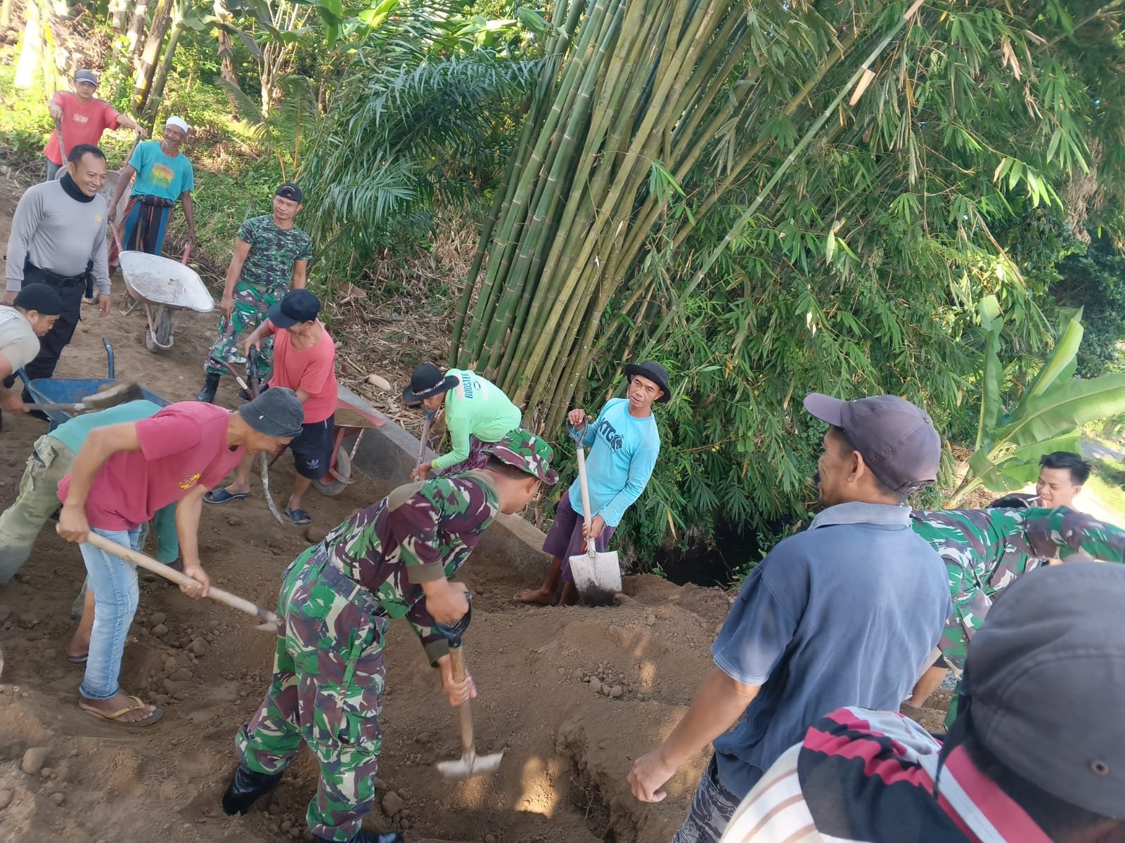 Satgas TMMD dan Warga Desa Bagu Bergotong Royong Kerjakan Pengerasan Jalan Baru