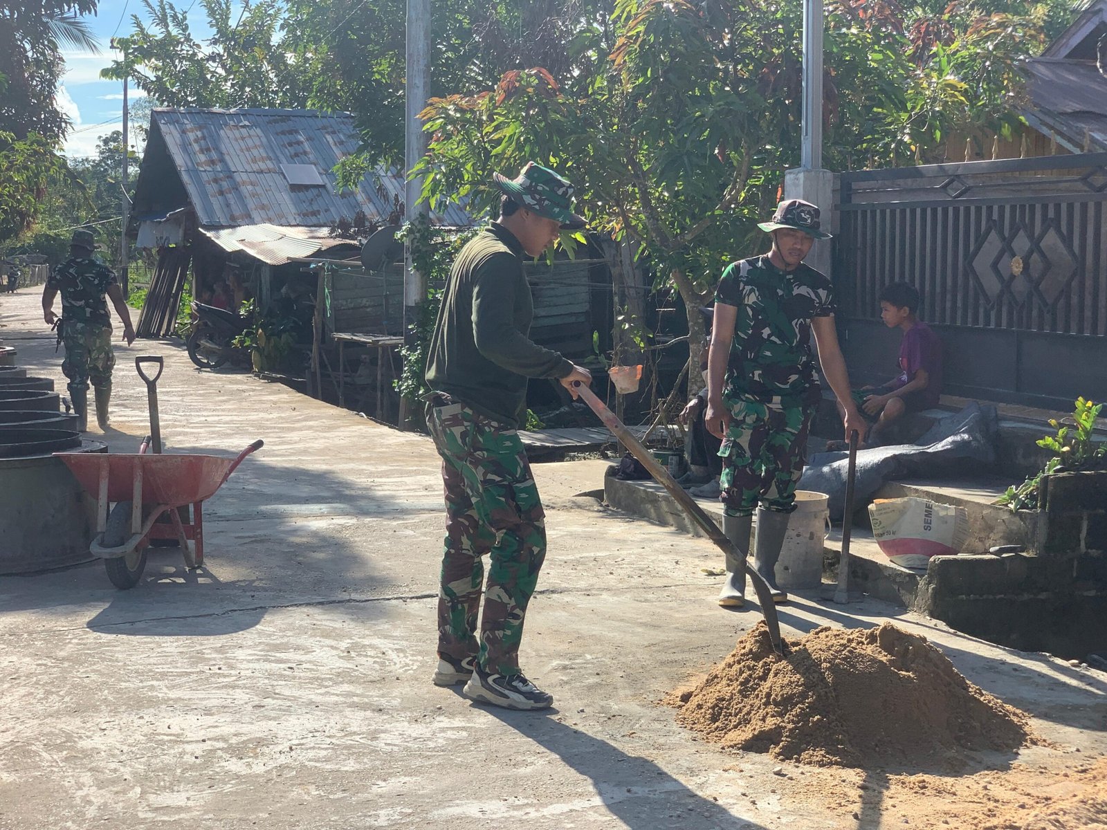 Satgas TMMD dan Warga Gotong Royong Aduk Semen untuk Cincin Sumur Galian