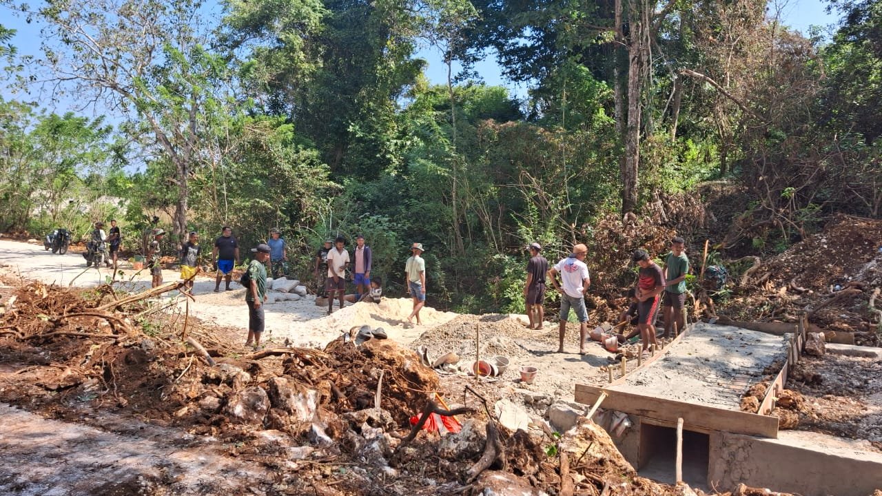 NTT-KUPANG, — Semangat kebersamaan terus menyala di lokasi TMMD ke-124 Kodim 1604/Kupang yang kini memasuki hari ke-16. Dengan penuh dedikasi, anggota Satgas TMMD bersama warga Desa Huilelot, Kecamatan Semau, Kabupaten Kupang, bahu-membahu melanjutkan pembangunan jalan desa. Fokus pekerjaan hari ini adalah pengecoran gorong-gorong yang menjadi bagian vital dari sistem drainase jalan. Rabu (21/05/2025).