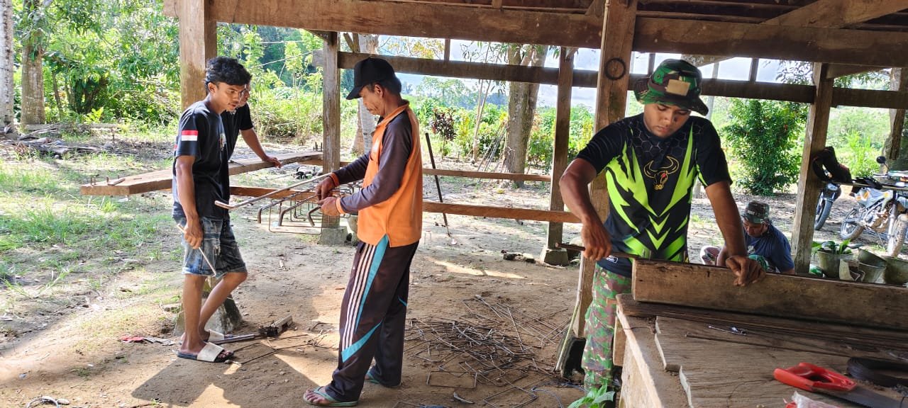Satgas TMMD dan Warga Morengke Kompak Siapkan Besi untuk Plat Jembatan