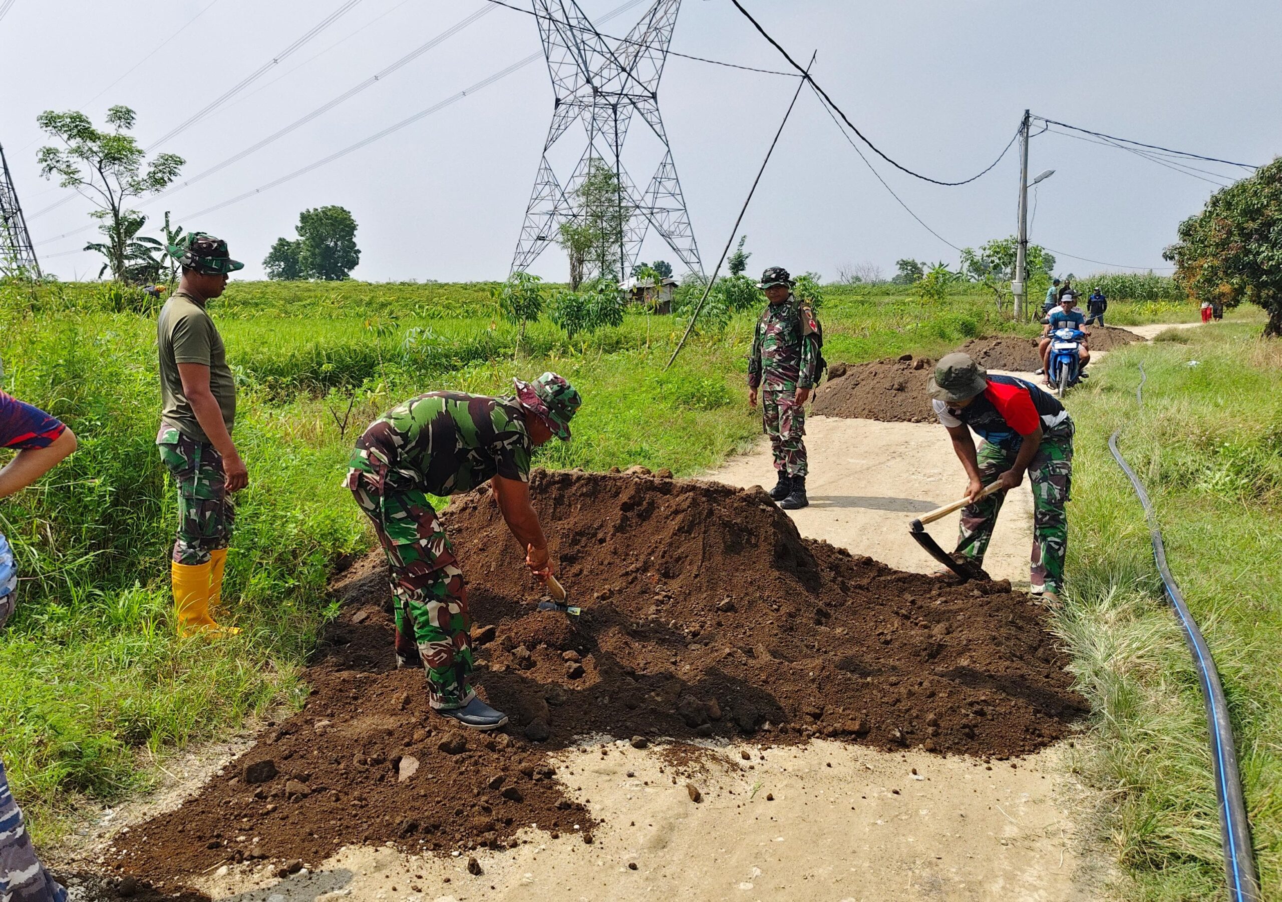 Gresik – Program TMMD ke-128 kembali menunjukkan dampak positif melalui kegiatan pengurukan jalan poros di Desa Slempit, Kecamatan Kedamean, Kabupaten Gresik, Rabu (29/4/2026).