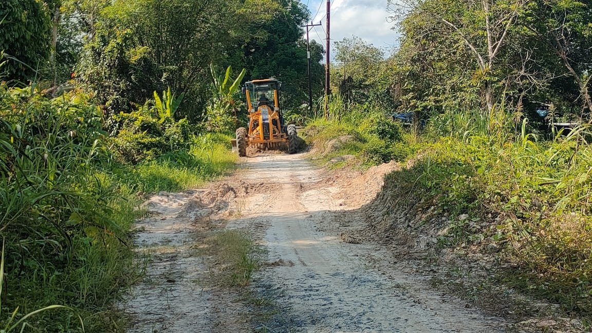 Pekerjaan ini dilakukan secara bertahap, melibatkan alat berat dan tenaga gotong royong dari warga desa. Jalan ini ditargetkan selesai hingga beberapa kilometer ke arah pusat desa.