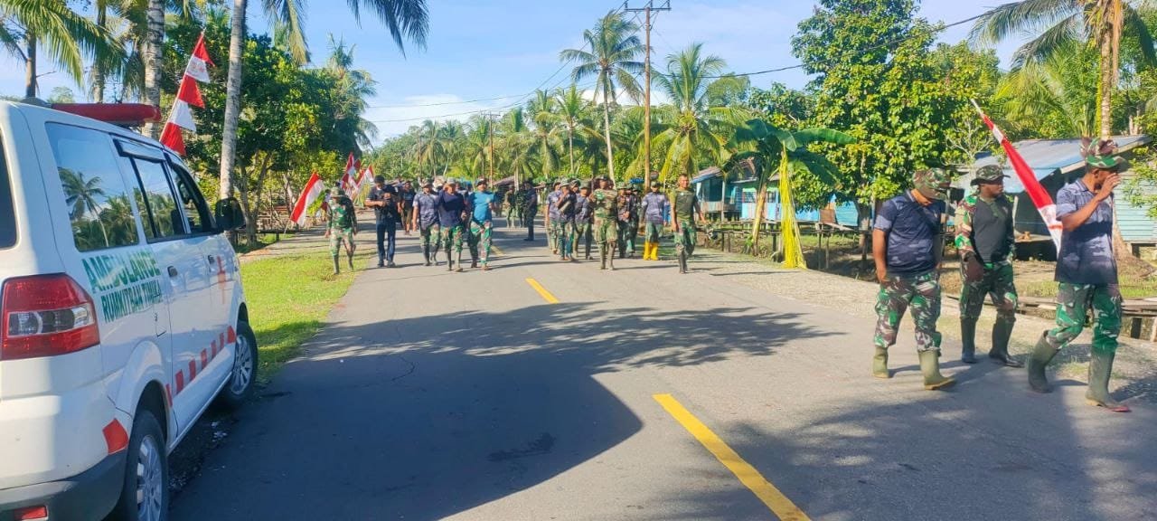 Satuan Tugas TNI Manunggal Membangun Desa (Satgas TMMD) ke-124 Kodim 1710/Mimika di Kampung Pigapu, melaksanakan apel pagi rutin sebelum memulai kegiatan pembangunan fisik dan nonfisik, Rabu (21/5/2025)