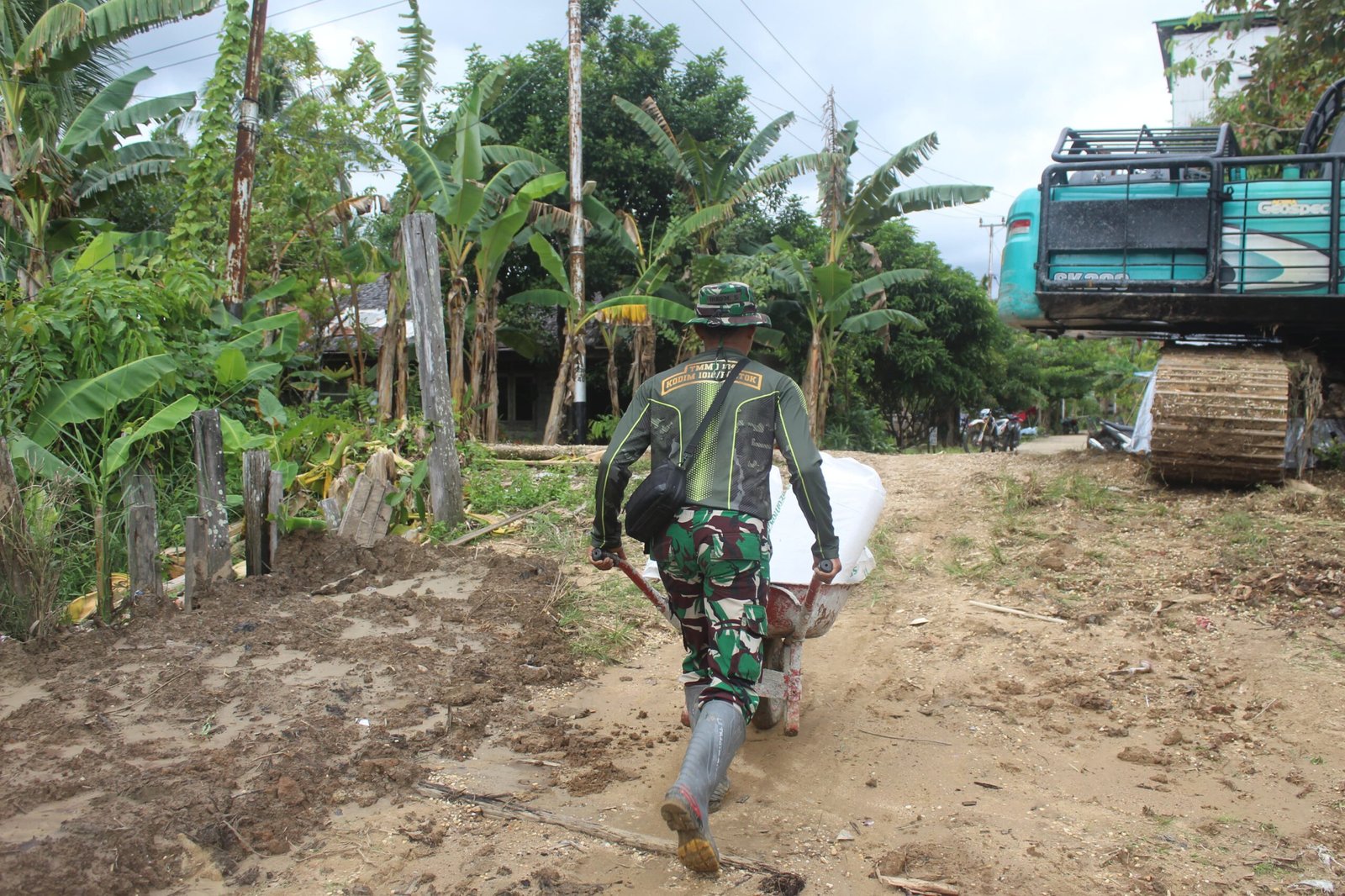 Medan desa yang sempit dan tidak bisa dilalui kendaraan besar menjadi tantangan tersendiri bagi Satgas. Untuk mengatasi hal tersebut, mereka memanfaatkan arco untuk mengangkut pasir, semen, dan batako ke lokasi pembangunan rumah. Arco menjadi solusi efektif yang memudahkan proses distribusi bahan ke titik-titik yang sulit dijangkau.