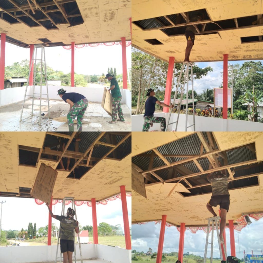 Satgas TMMD ke-124 Bongkar Plafon Tribun Lapangan Sepak Bola Desa Wiawia
