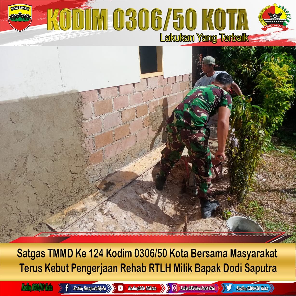 Dansatgas TMMD ke 124 yang juga Komandan Kodim 0306/50 Kota Letkol Inf Ucok Namara mengatakan hari ini Satgas TMMD bersama masyarakat kebut pengerjaan plesteran dinding dan pengacian.