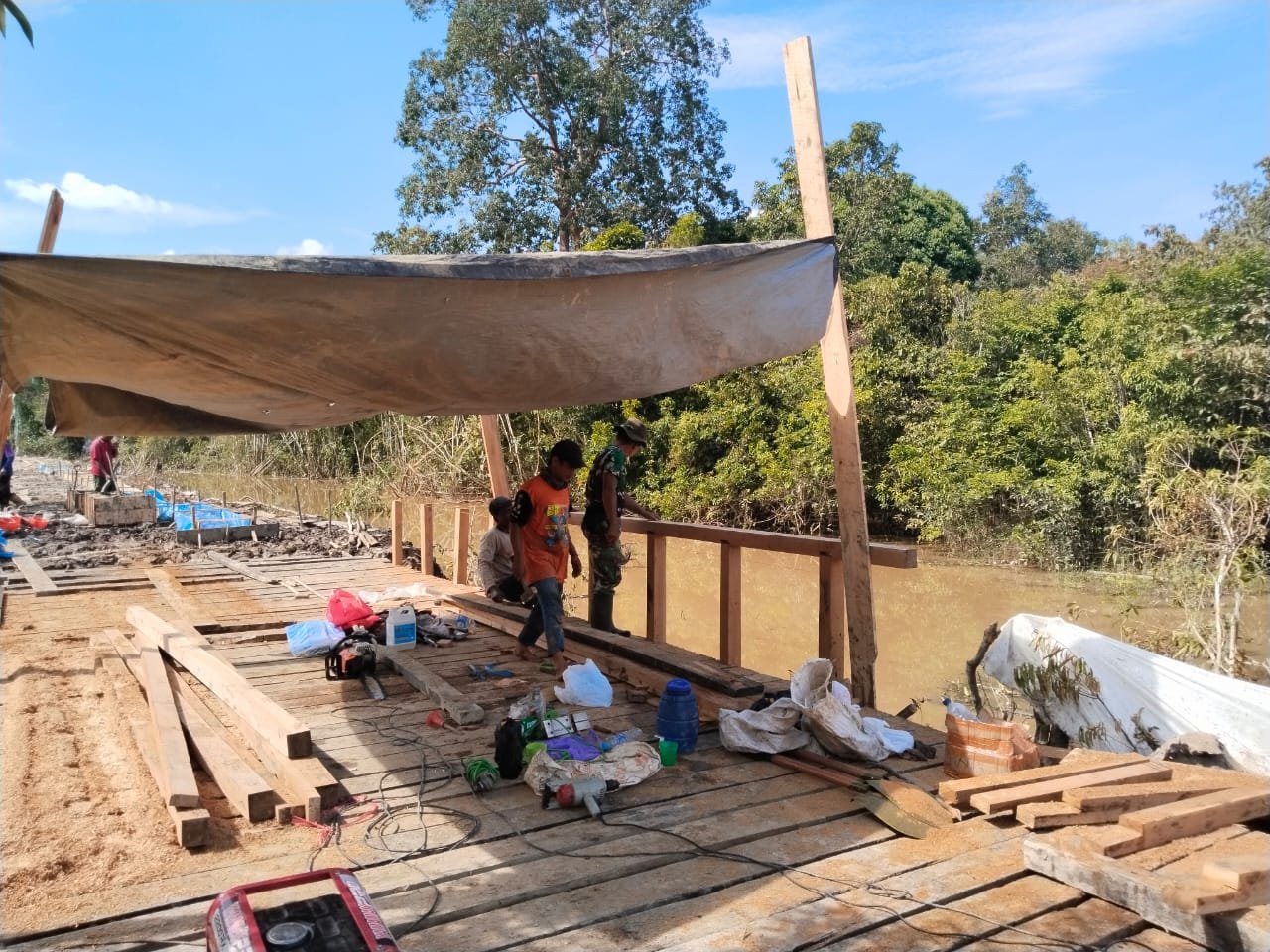 Satgas TMMD ke-124 Kodim 1012/Buntok Bangun Jembatan di Jalan Desa Talio