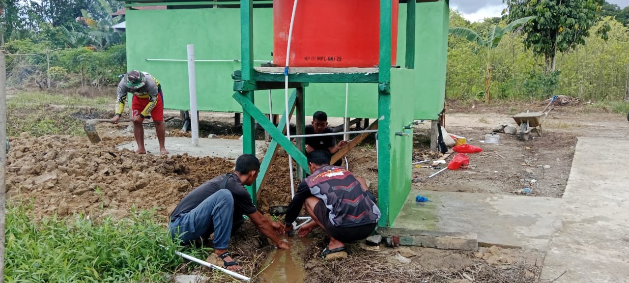Putussibau – Menjelang akhir program, Satgas TNI Manunggal Membangun Desa (TMMD) ke-124 Kodim 1206/Putussibau menyelesaikan pemasangan instalasi pipa air untuk fasilitas Mandi, Cuci, Kakus (MCK) dan tandon air di Dusun Sungai Umbin, Desa Tapang Daan, Kecamatan Kalis, Kabupaten Kapuas Hulu, pada Sabtu (31/05/2025).