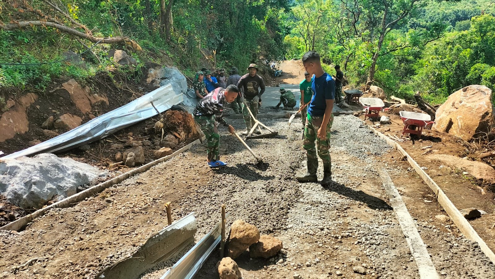 Buleleng, Bali — Kegiatan TNI Manunggal Membangun Desa (TMMD) Ke-124 Kodim 1609/Buleleng di Desa Depeha terus menunjukkan progres meskipun menghadapi medan yang menantang. Hingga saat ini, proses betonisasi jalan telah mencapai 34 persen ( 24/5)