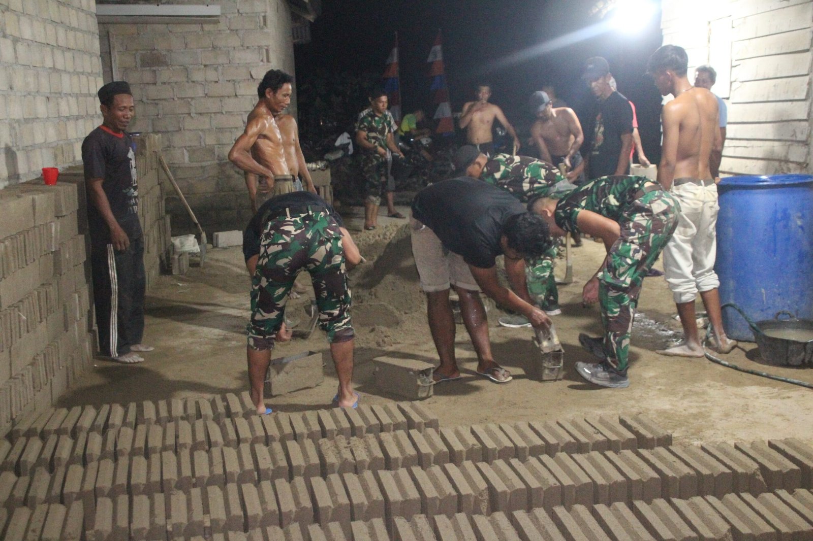 Dengan menggunakan alat sederhana dan semangat gotong royong, para personel Satgas bersama warga mencetak batako yang akan digunakan untuk membangun rumah layak huni bagi warga kurang mampu. Proses ini menjadi bagian penting dari tahapan pembangunan fisik TMMD yang menyasar langsung kebutuhan dasar masyarakat.