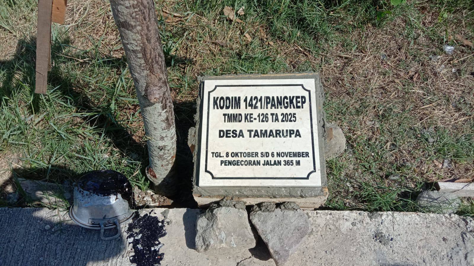 Pangkep — Satgas TMMD Ke-126 Kodim 1421/Pangkep Buat Prasasti Sebagai simbol penyelesaian dan bentuk pertanggungjawaban kepada masyarakat Di Desa Tamarupa Kec Mandalle Kab Pangkep. Rabu (05/11/2025).