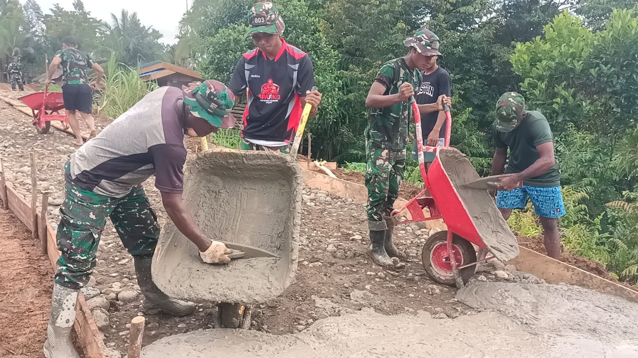 Dan SSK TMMD, Kapten Inf Melianus Momay, mengatakan bahwa proses pengecoran jalan dilakukan secara gotong royong oleh personel Satgas bersama masyarakat setempat.