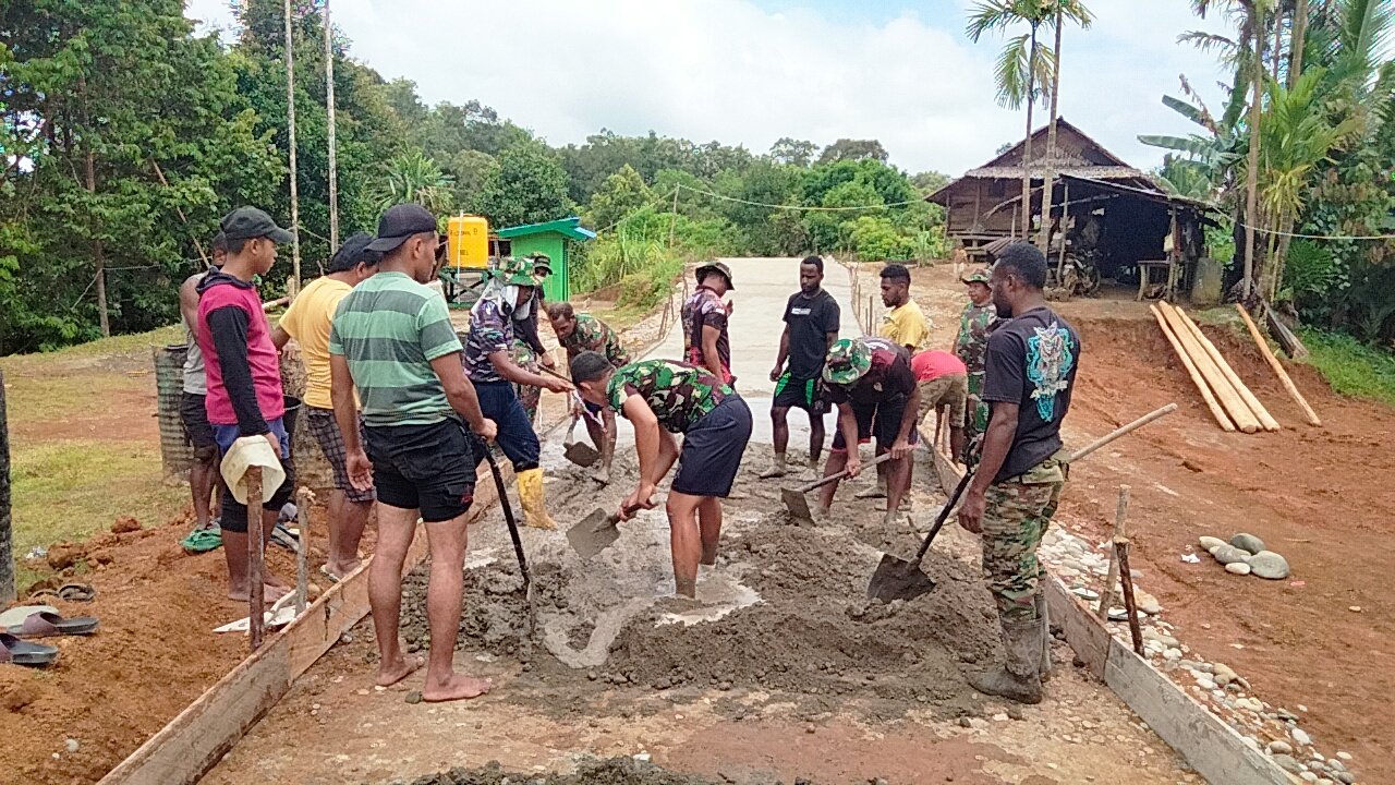 Satgas TMMD Ke-126 Kodim 1711/BVD Kebut Pengecoran Jalan di Waropko, Buka Akses Ekonomi Warga Perbatasan