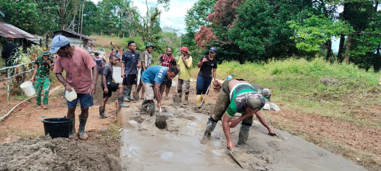 Satgas TMMD Ke-126 Percepat Proses Pengecoran Jalan di Kampung Waropko