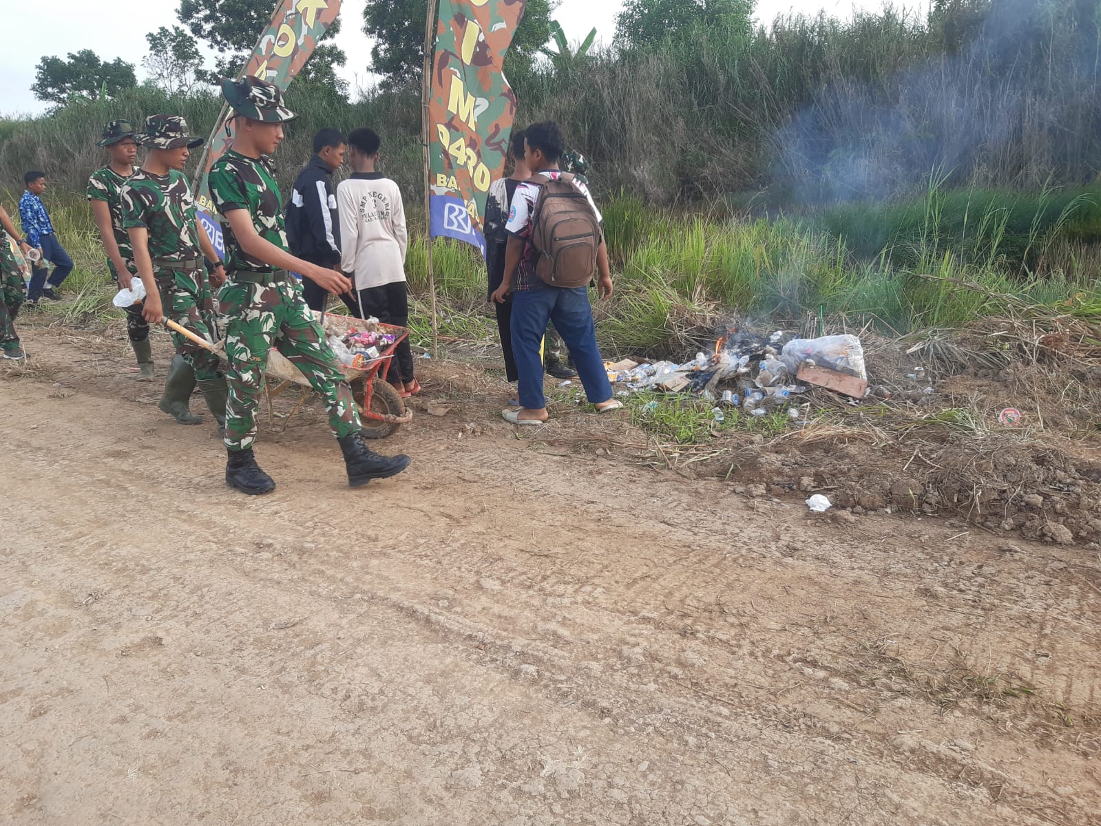 Kegiatan ini dilaksanakan dengan melibatkan personel Satgas bersama berbagai pihak terkait, sebagai persiapan untuk upacara pembukaan TMMD yang akan datang. Pembersihan dimulai setelah apel pagi personel Satgas dan dilakukan secara kolektif untuk mempercepat proses.