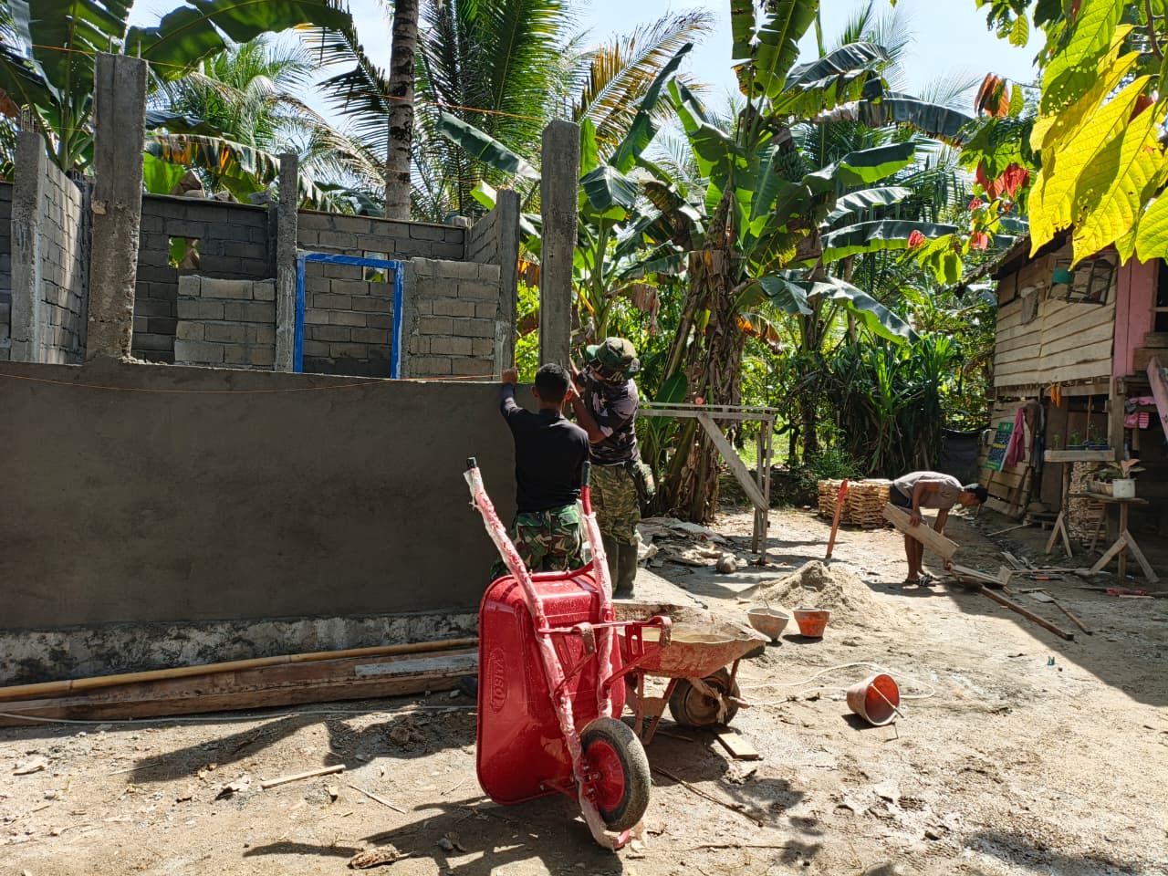 Tolitoli – Tim Satgas TMMD ke-127 yang berasal dari Kodim 1305/Buol Tolitoli kembali melanjutkan pembangunan MCK (Mandi, Cuci, Kakus) di Desa Oyom, Kecamatan Lampasio, Kabupaten Tolitoli, pada hari Senin (2/3/2026). Pembangunan fasilitas ini merupakan bagian dari program TMMD yang bertujuan untuk meningkatkan kualitas sanitasi masyarakat setempat. Keberadaan MCK yang layak sangat penting untuk mendukung kebersihan lingkungan serta kesehatan warga di daerah tersebut.