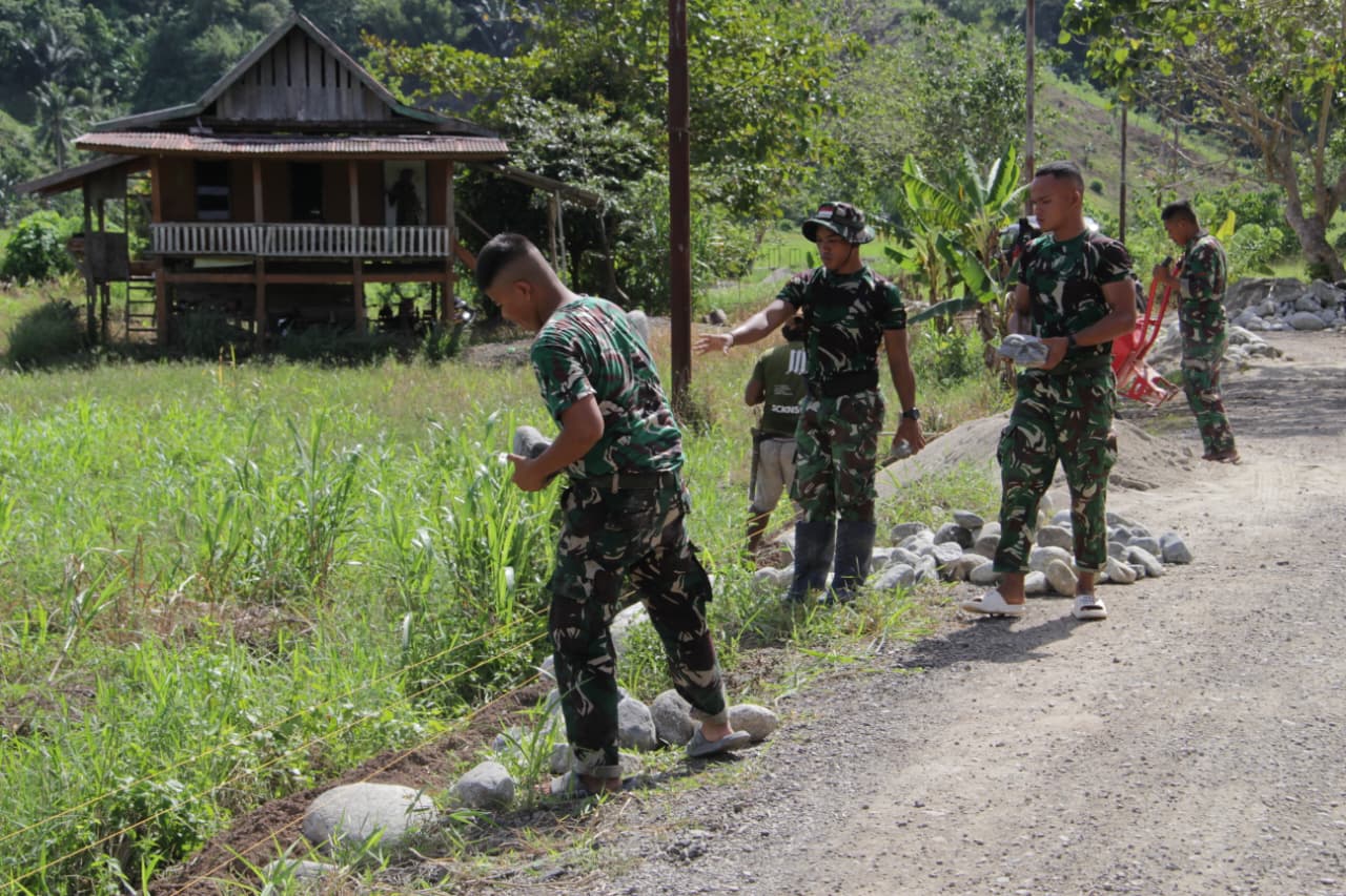 Program pembangunan ini merupakan salah satu wujud nyata perhatian TNI dalam mendukung percepatan pembangunan infrastruktur di pedesaan serta meningkatkan kesejahteraan masyarakat di Desa Oyom.