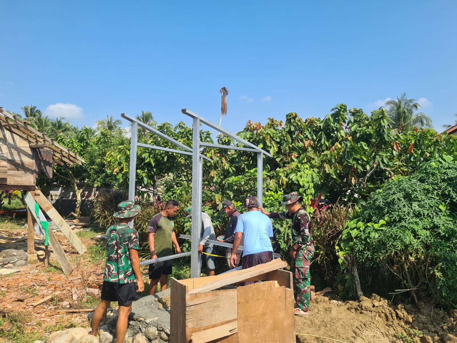 Di lokasi kegiatan, terlihat anggota Satgas TMMD yang dipimpin oleh Letda Inf Rudini bersama personel lainnya tengah mendirikan kerangka bangunan MCK. Pembangunan ini merupakan bentuk kepedulian TNI terhadap kebutuhan dasar masyarakat akan sanitasi yang layak.