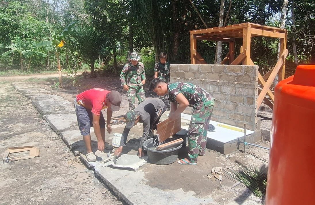 Satgas TMMD Kejar Pemasangan Keramik Kran Sumur Bor untuk Akses Air Bersih Warga