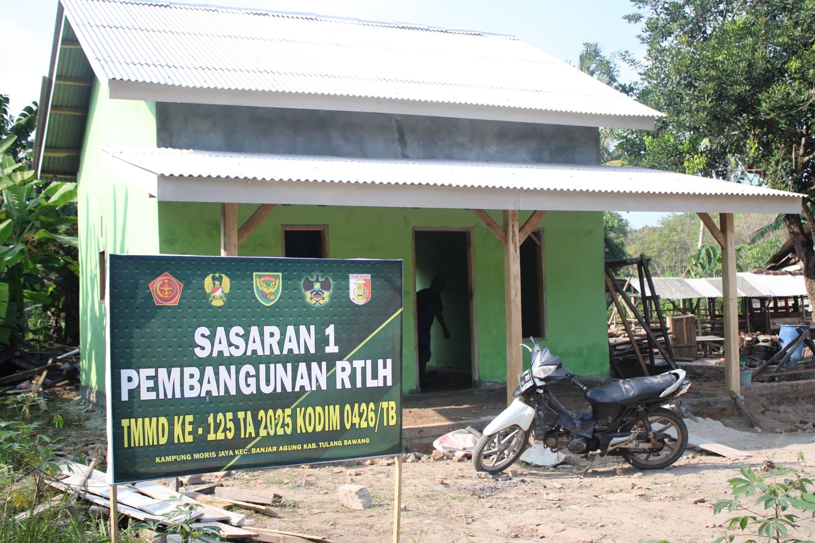 Tulang Bawang – Dalam upaya memberikan hunian yang lebih layak dan indah bagi warga, Satgas TNI Manunggal Membangun Desa (TMMD) ke-125 Kodim 0426/Tulang Bawang melaksanakan pengecatan Rumah Tidak Layak Huni (RTLH) sasaran pertama di Kampung Moris Jaya, Kecamatan Banjar Agung, Minggu (10/08/2025).