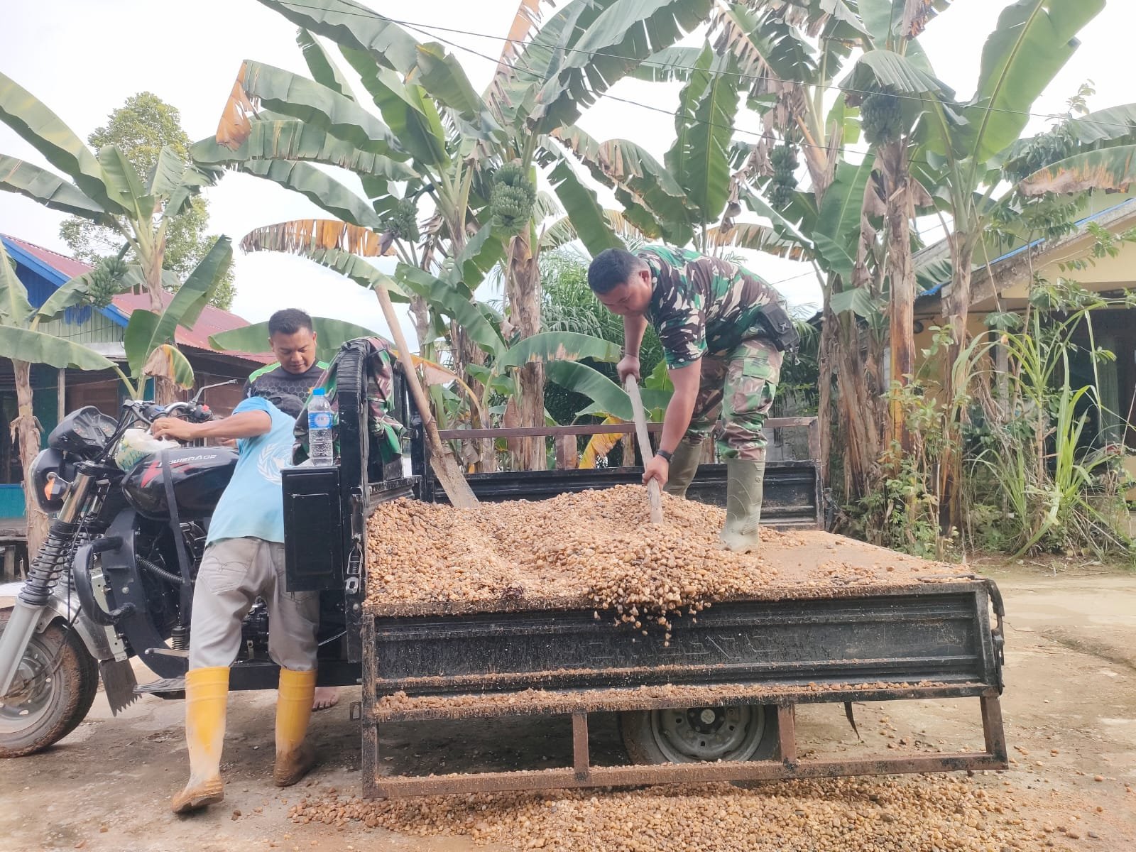 Buntok – Wujud sinergi antara TNI dan masyarakat kembali terlihat dalam pelaksanaan TMMD Ke-124 Kodim 1012/Buntok. Pada salah satu kegiatan fisik, Satgas TMMD mengangkut pasir untuk pembuatan gorong-gorong dengan menggunakan kendaraan roda tiga milik warga.