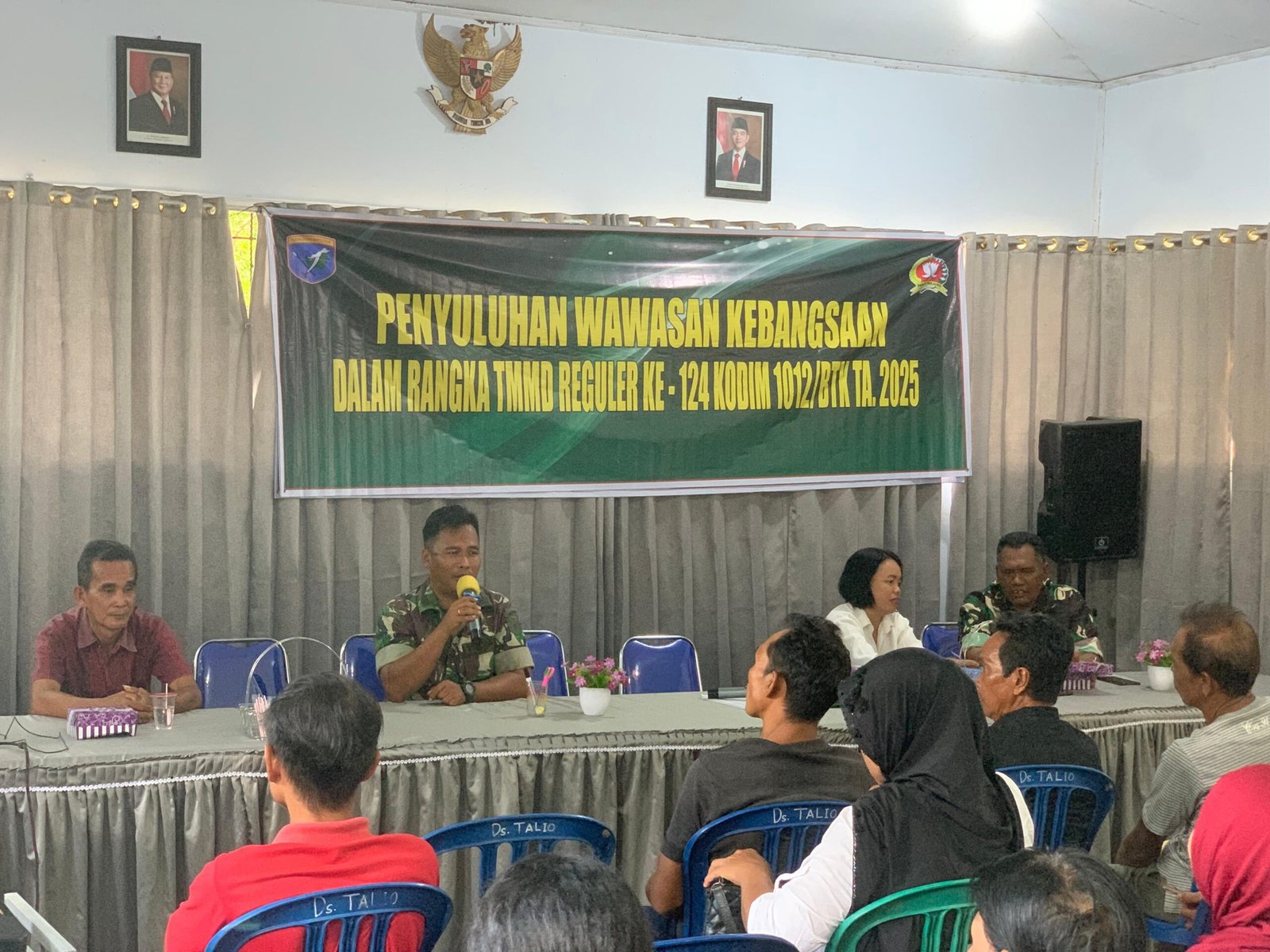Barito Selatan – Tidak hanya fokus pada pembangunan fisik, Satgas TMMD Ke-124 Kodim 1012/Buntok juga menyelenggarakan kegiatan non fisik berupa penyuluhan wawasan kebangsaan, bertempat di aula Desa Talio, Kecamatan Karau Kuala, Kabupaten Barito Selatan.