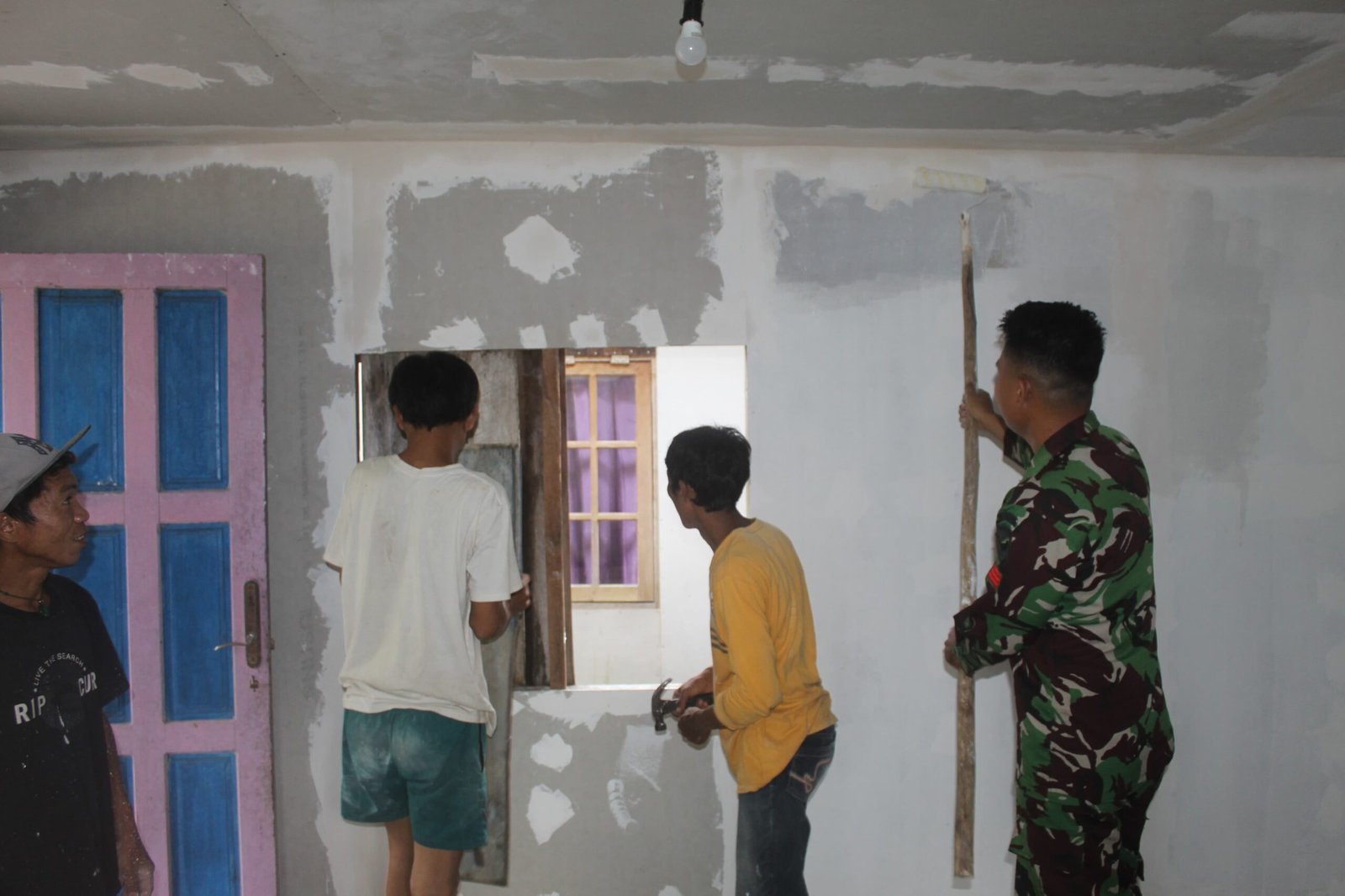 Satgas TMMD Kodim 1012/Buntok Laksanakan Pengecatan RTLH Milik Pak Celong di Desa Talio