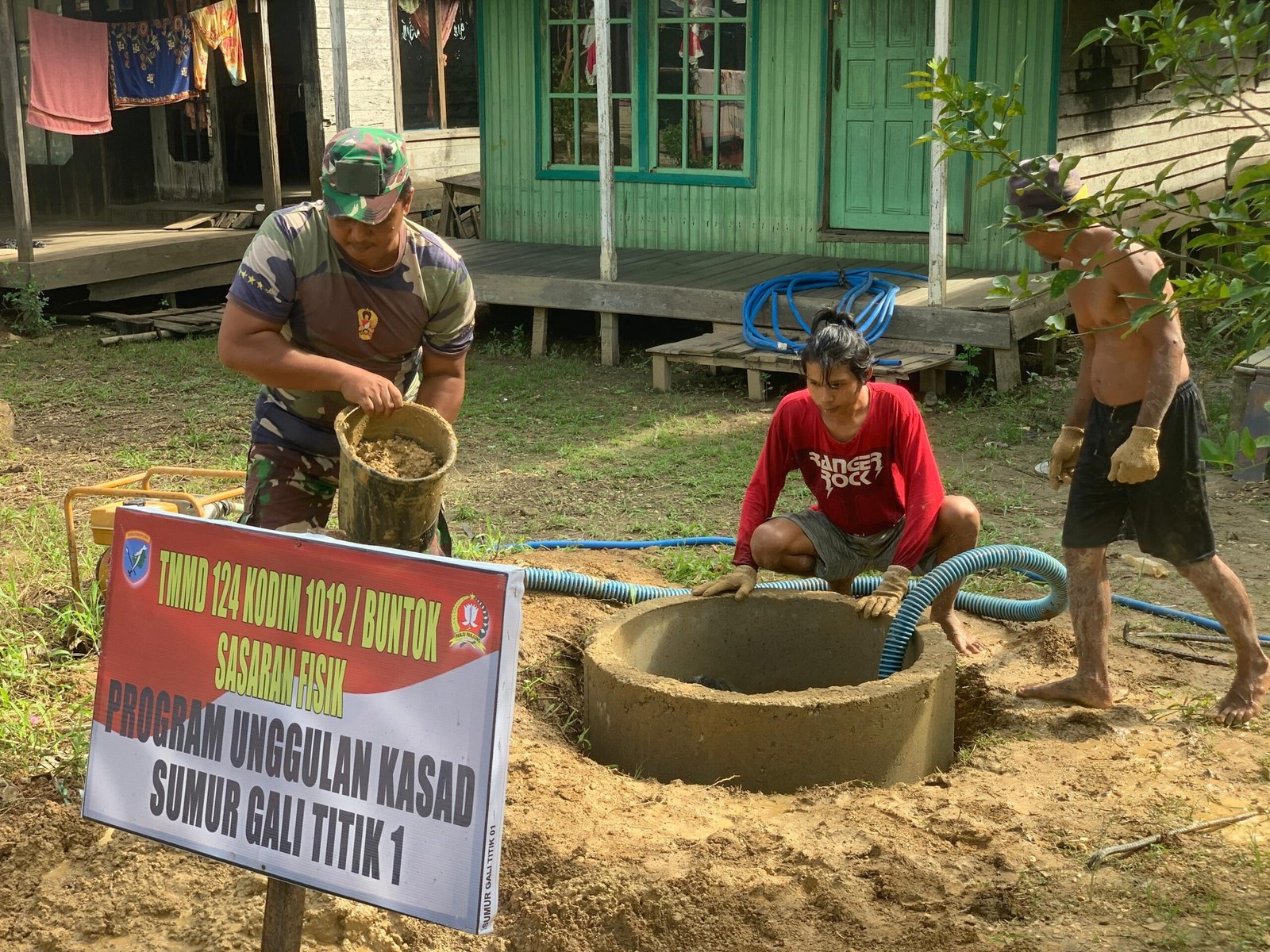 Satgas TMMD Kodim 1012/Buntok Lakukan Pembersihan Tanah di Sumur Gali Desa Talio