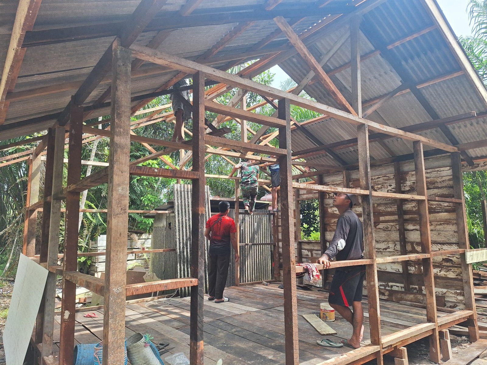Satgas TMMD Kodim 1012/Buntok Lanjutkan Pemasangan Atap RTLH di Desa Wungkur Baru