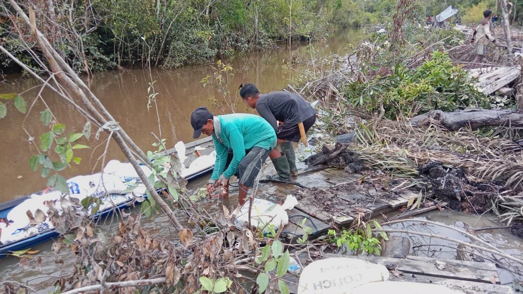 Satgas TMMD Kodim 1012/Buntok Lansir Material Pakai Perahu Kecil di Jalan Desa Talio