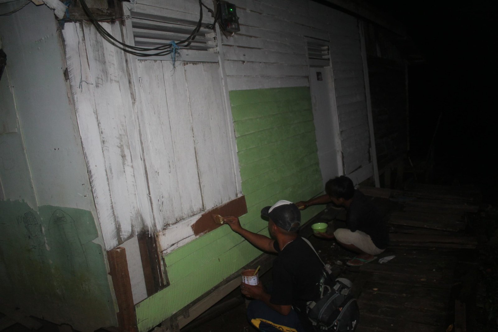 Di tengah kesederhanaan alat dan penerangan yang terbatas saat malam, semangat kerja tetap tinggi. Sinar lampu seadanya tidak menghalangi langkah para Satgas dan warga untuk menyelesaikan rumah hingga ke tahap akhir, membuktikan tekad bersama membangun desa.