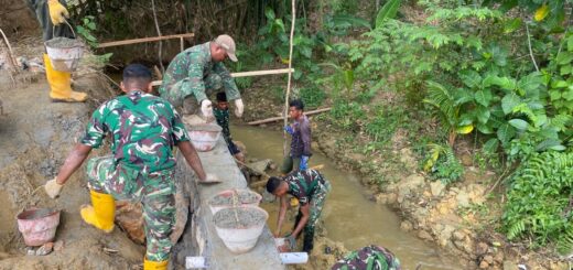 Warga sekitar turut membantu proses pengerjaan, sebagai wujud kebersamaan antara TNI dan masyarakat.